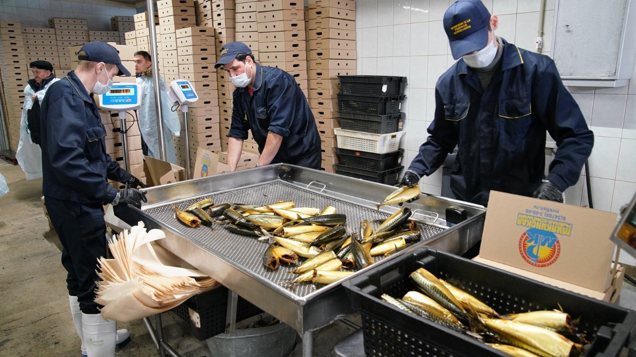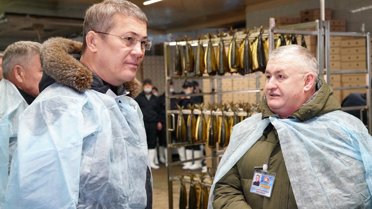 Радий Хабиров продегустировал рыбу и поинтересовался, как компания работает с торговыми сетями, каким образом поставляется продукция.