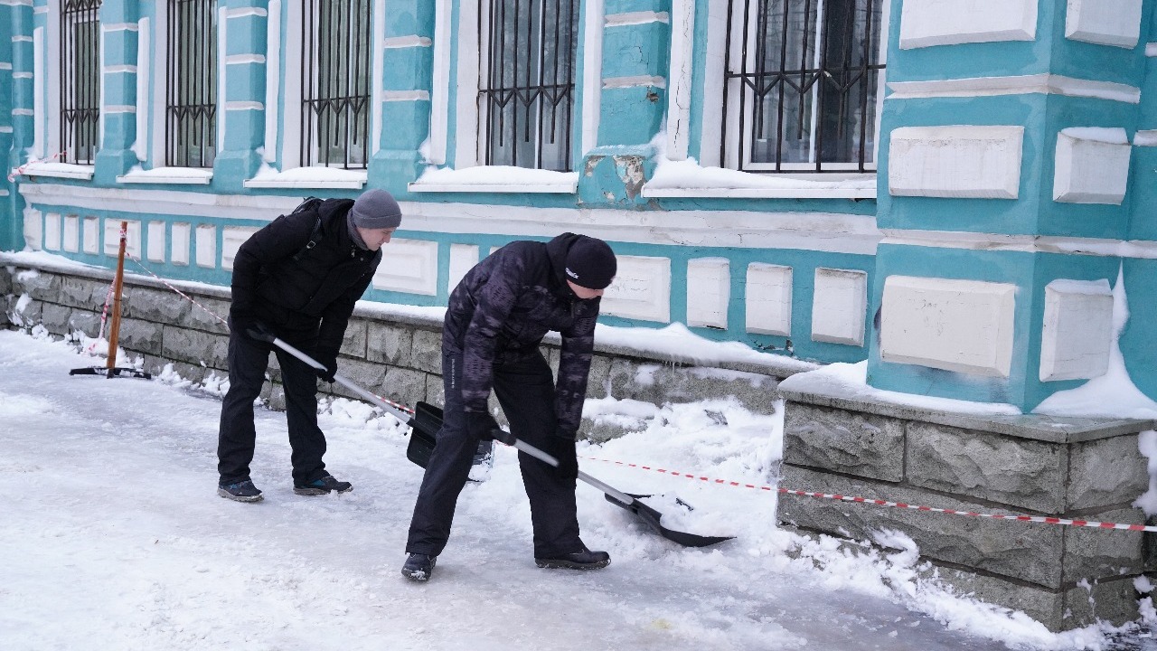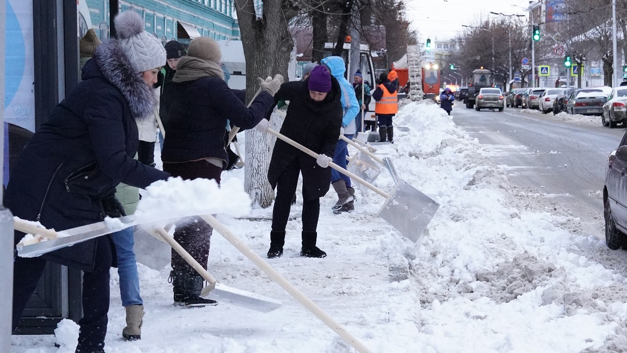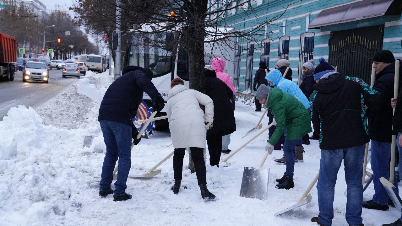 Сотрудники мэрии Уфы вместо совещания утром вышли чистить снег