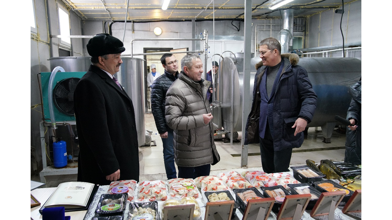 УФА, 12 фев 2020. /ИА «Башинформ», Азат Гиззатуллин/. Глава Башкортостана Радий Хабиров во время рабочей поездки в Альшеевский район пообщался с предпринимателями, которые занимаются производством продуктов питания.