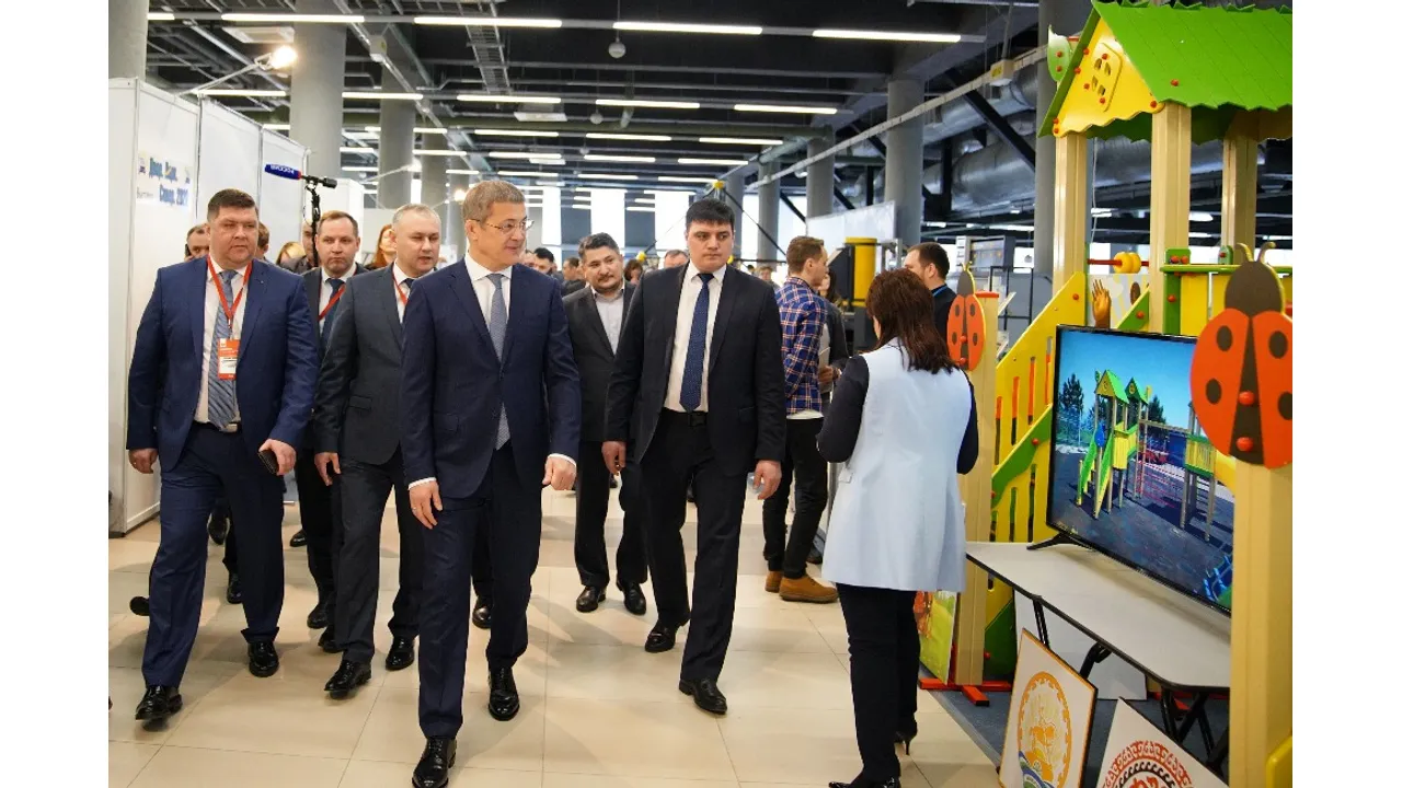 Глава Башкирии Радий Хабиров посетил выставку республиканских производителей элементов благоустройства «Двор. Парк. Сквер. 2020», открывшуюся в среду в рамках Российского промышленного форума в Уфе.
