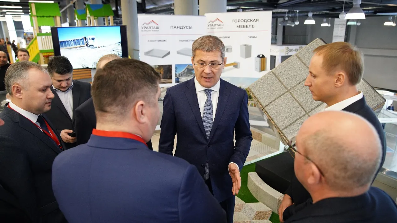 Радий Хабиров ознакомился с экспозициями, осмотрел представленные образцы, обсудил с предпринимателями планы по дальнейшему развитию предприятий, возможности поставок продукции для ЖКХ Башкирии.