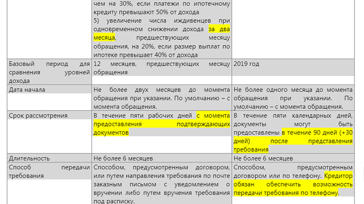 Разнится и период, с которым сравнивают снижение доходов: в случае с кредитными каникулами для сравнения берется среднемесячный доход в 2019 году. Для ипотечных каникул берутся средние доходы за 12 предыдущих месяцев.