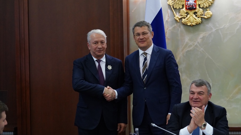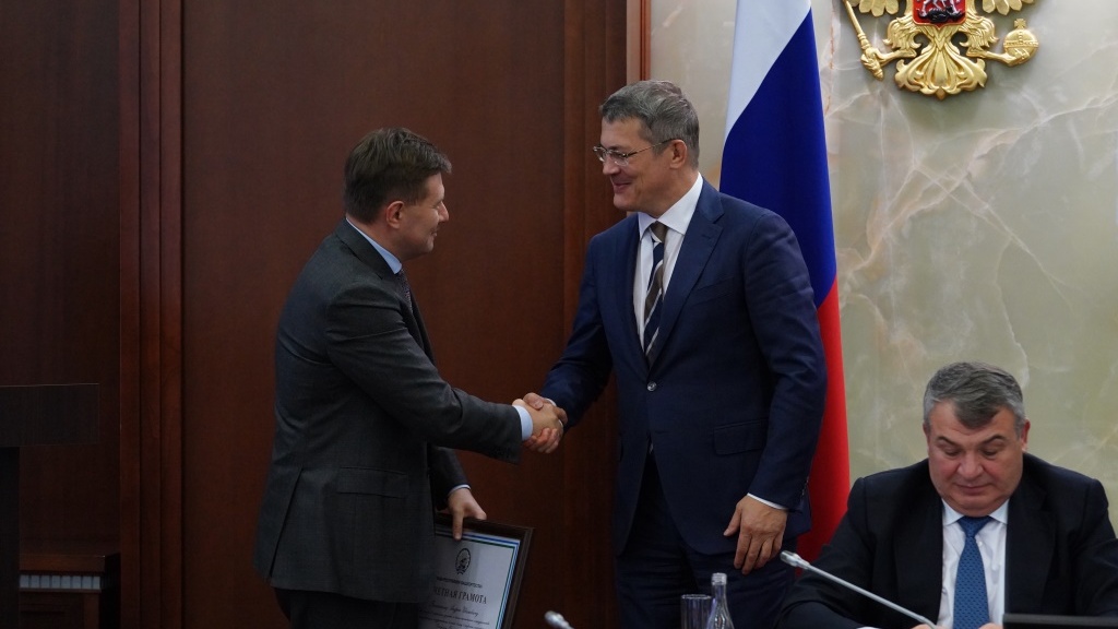 «Этот документ стратегически важен для наших совместных усилий по загрузке и дальнейшему развитию авиационных заводов региона, – сказал Радий Хабиров. – При этом прошу руководство предприятий поддерживать в коллективах строгое соблюдение санитарных норм и правил для стабильной работы в период коронавирусной инфекции».За большой вклад в развитие экономики Башкортостана глава республики вручил орден Салавата Юлаева генеральному директору концерна «Радиоэлектронные технологии» Николаю Колесову и Почётную грамоту Республики Башкортостан гендиректору АО «Вертолёты России» Андрею Богинскому.