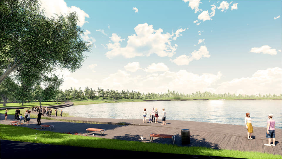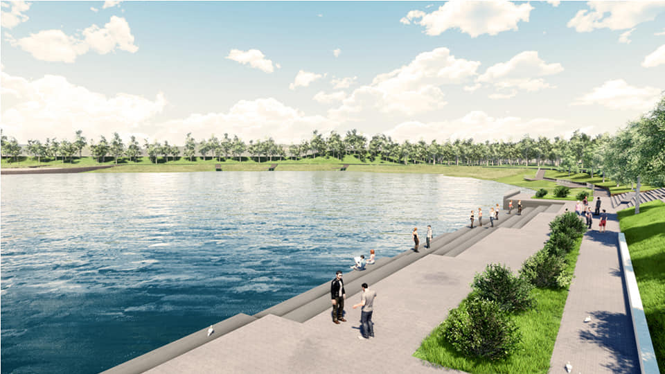 Вся построенная инфраструктура будет экологичной: вдоль береговой линии предусмотрен лоток, отводящий ливневые, талые и хозяйственные воды в канализацию. Вдоль берега планируется построить смотровые площадки, деревянную тропиночную сеть и высадить травянистую флору, защищающую озеро от загрязнения.