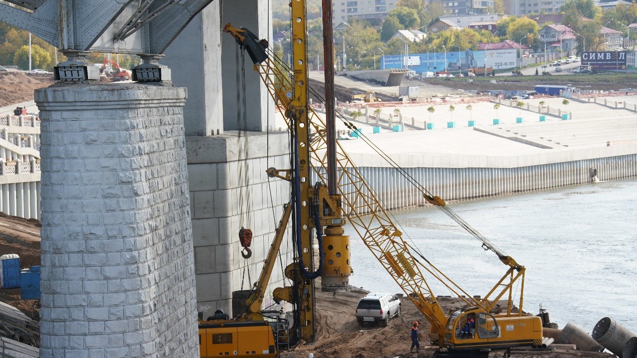 «Ранее в створе этих мостов располагался деревянный мост. При сооружении фундамента нам попадались элементы этого старого моста, – рассказывает начальник участка Мостоотряда № 30 Дмитрий Сережкин. – Стесненные условия, конечно, нам затрудняют работу кранами, то есть нет нормального поворота "стрелы"».По информации пресс-службы городской администрации, мост возводится благодаря нацпроекту «Безопасные и качественные автомобильные дороги». Уже в следующем году по новому мостовому переходу протяженностью 688 метров будет организовано одностороннее движение в направлении «Уфа - Аэропорт» по три полосы движения. После этого старый арочный мост 1956 года постройки закроется на реконструкцию для укрепления опор и замены пролетных строений.