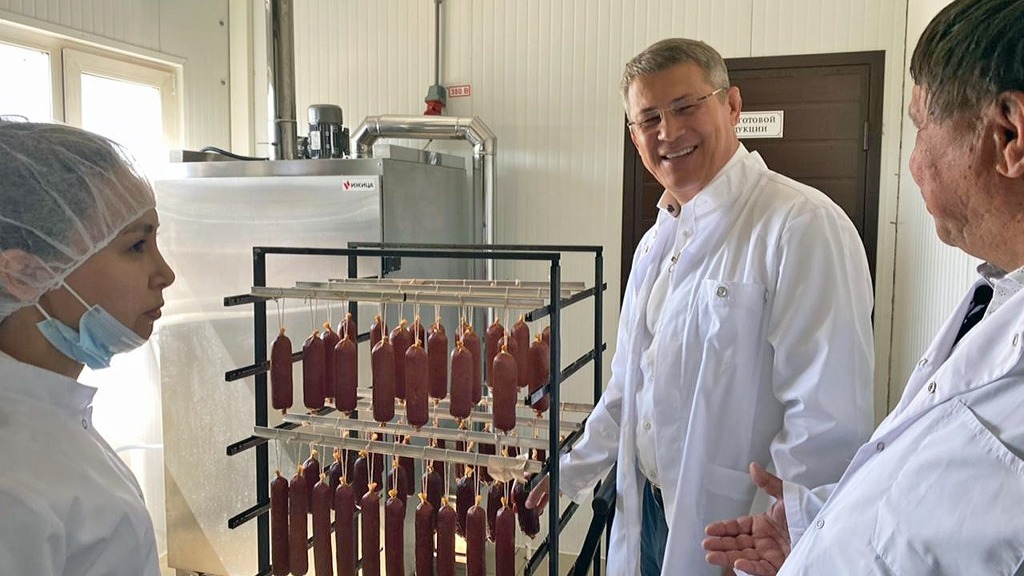 Глава Башкортостана побеседовал с фермером, посмотрел, как работает цех и пожелал ему удачи в новом направлении агробизнеса.