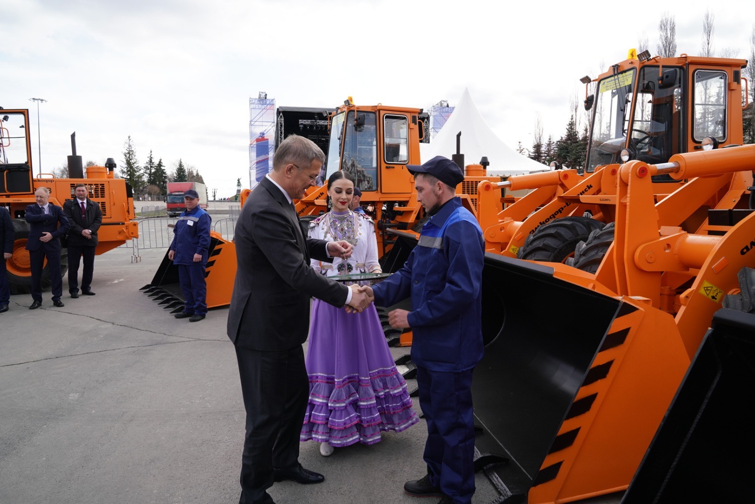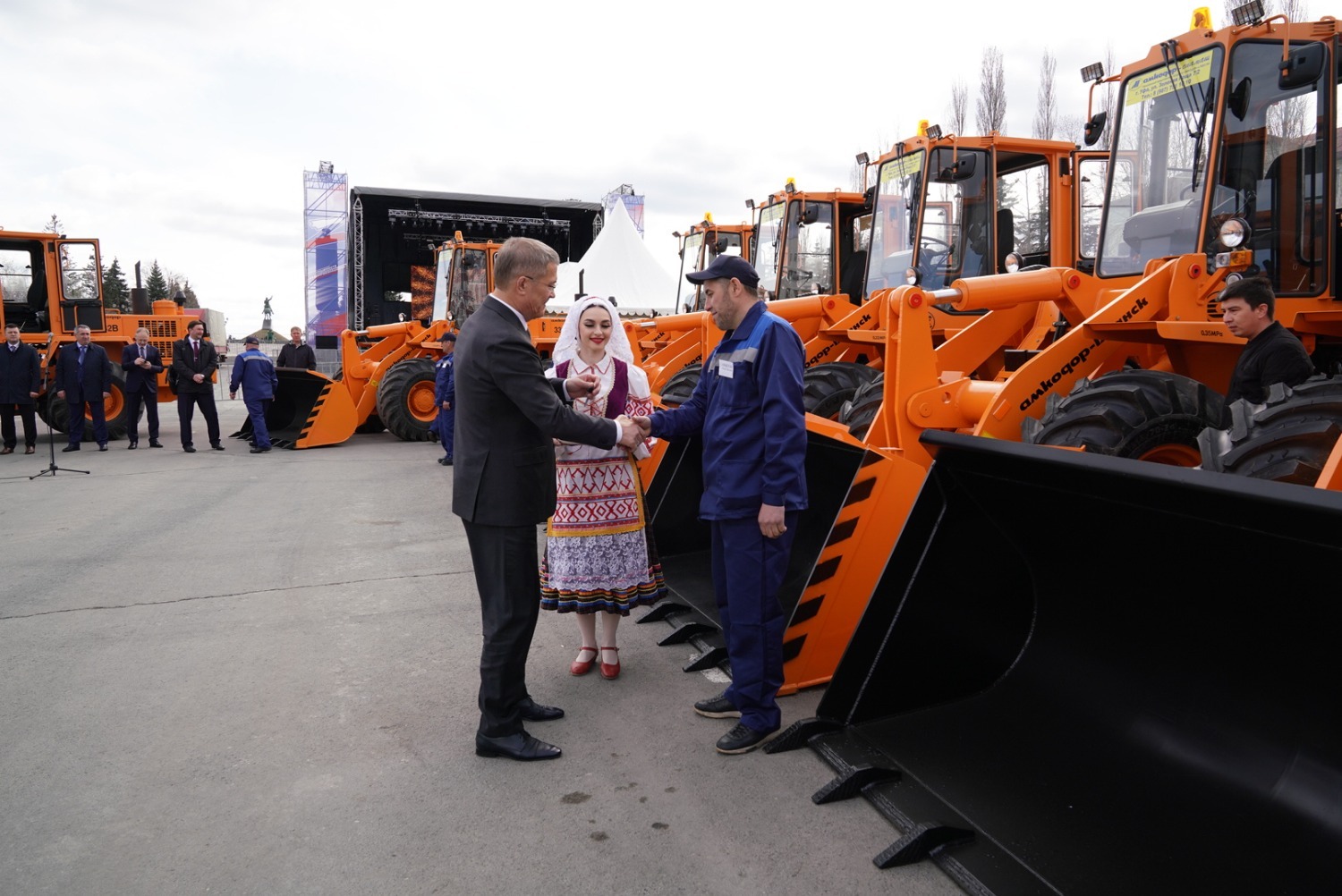 Сегодня коммунальщики Уфы получили 11 фронтальных погрузчиков производства белорусской машиностроительной компании «Амкодор». Ключи от новой техники 11 водителям муниципального предприятия по благоустройству вручил Глава Башкортостана Радий Хабиров.