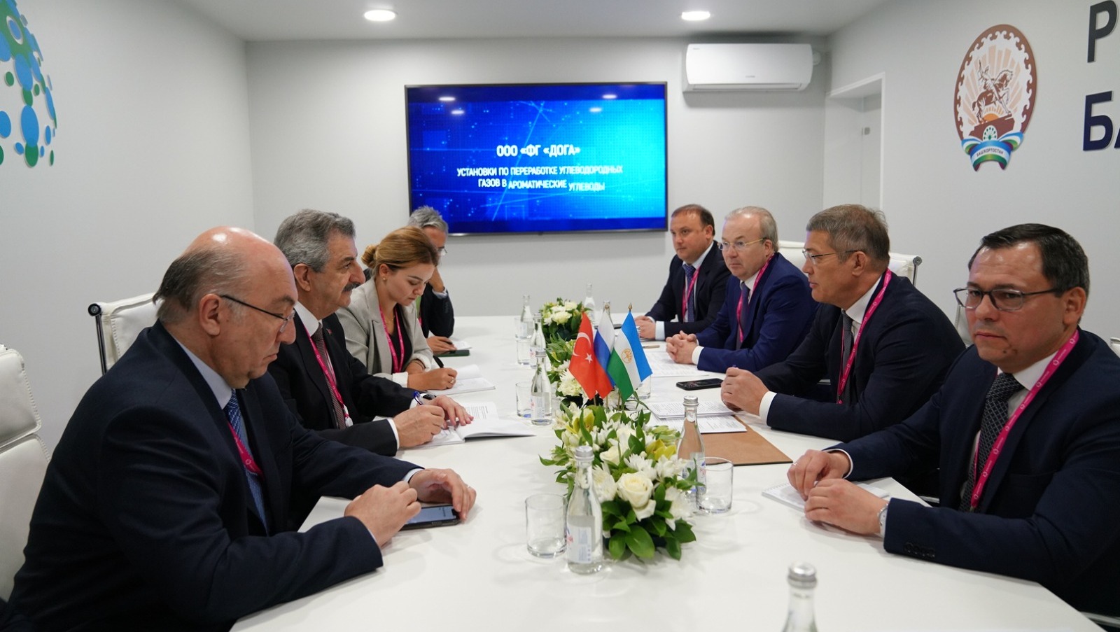 Сегодня в Екатеринбурге в рамках международной промышленной выставки «Иннопром» Глава Башкортостана Радий Хабиров провел рабочую встречу с заместителем министра промышленности и технологий Турецкой Республики Хасаном Бюйюкдеде. В ней также принял участие Чрезвычайный и Полномочный посол Турции в Российской Федерации Мехмет Самсар.