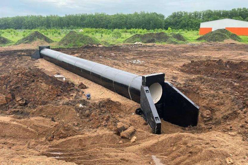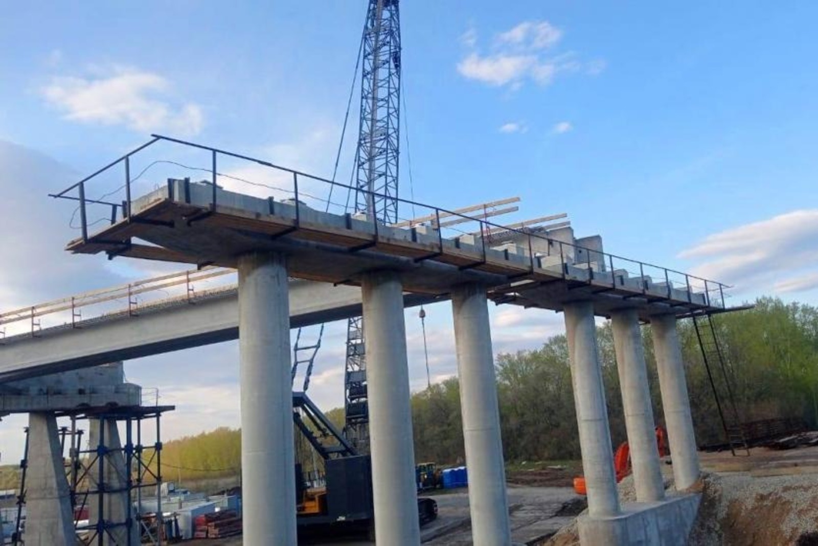 Кроме этого, на объекте выполняются строительно-монтажные работы по устройству 96-метровой водопропускной трубы диаметром 1500 мм. На сегодняшний день смонтировано пять балок в пролете №1-№2.
