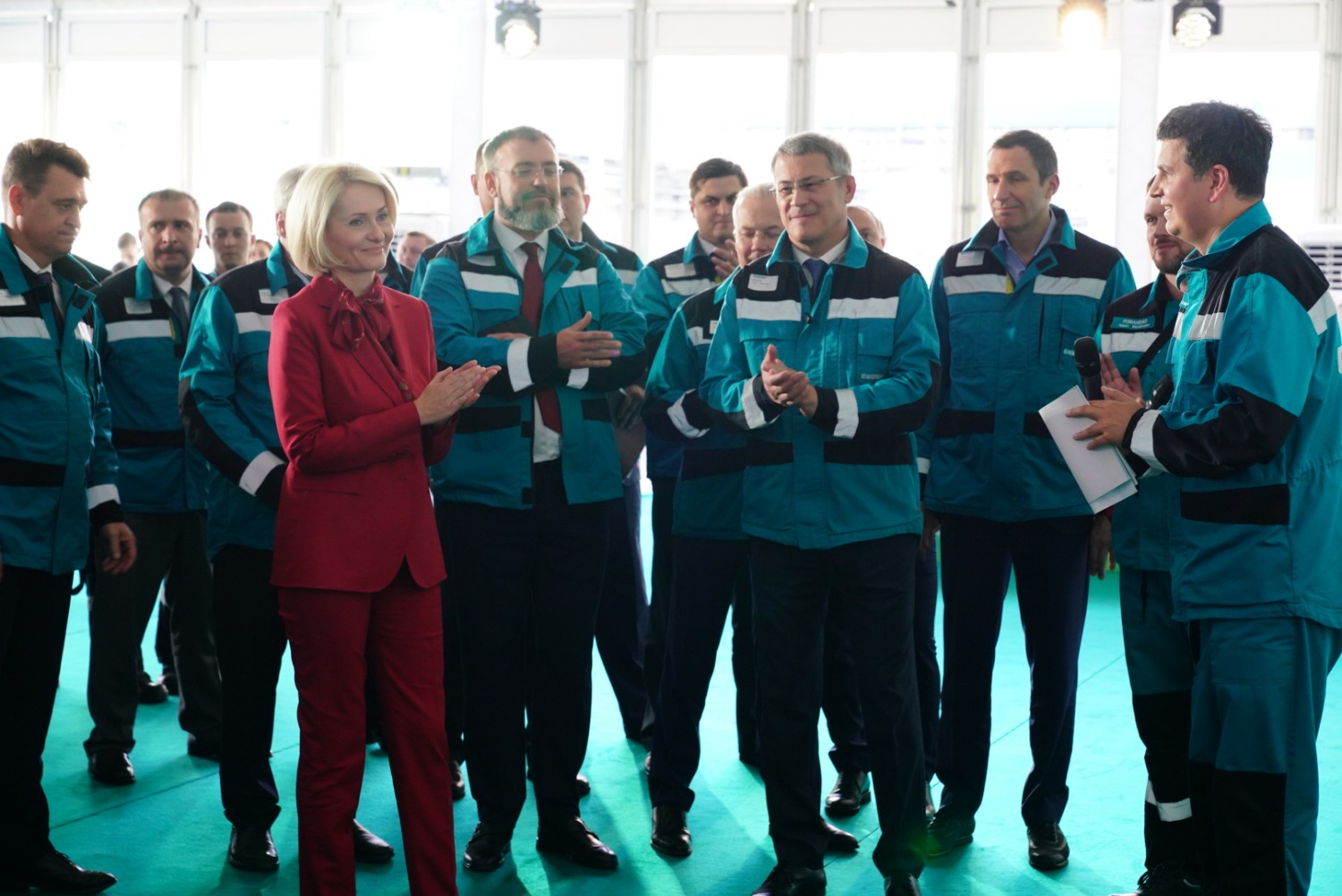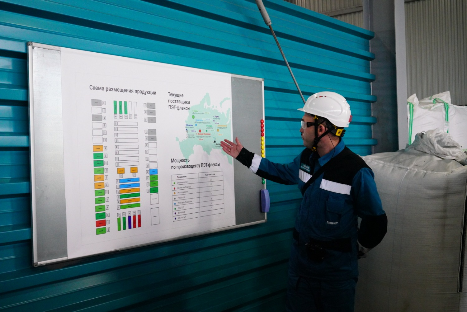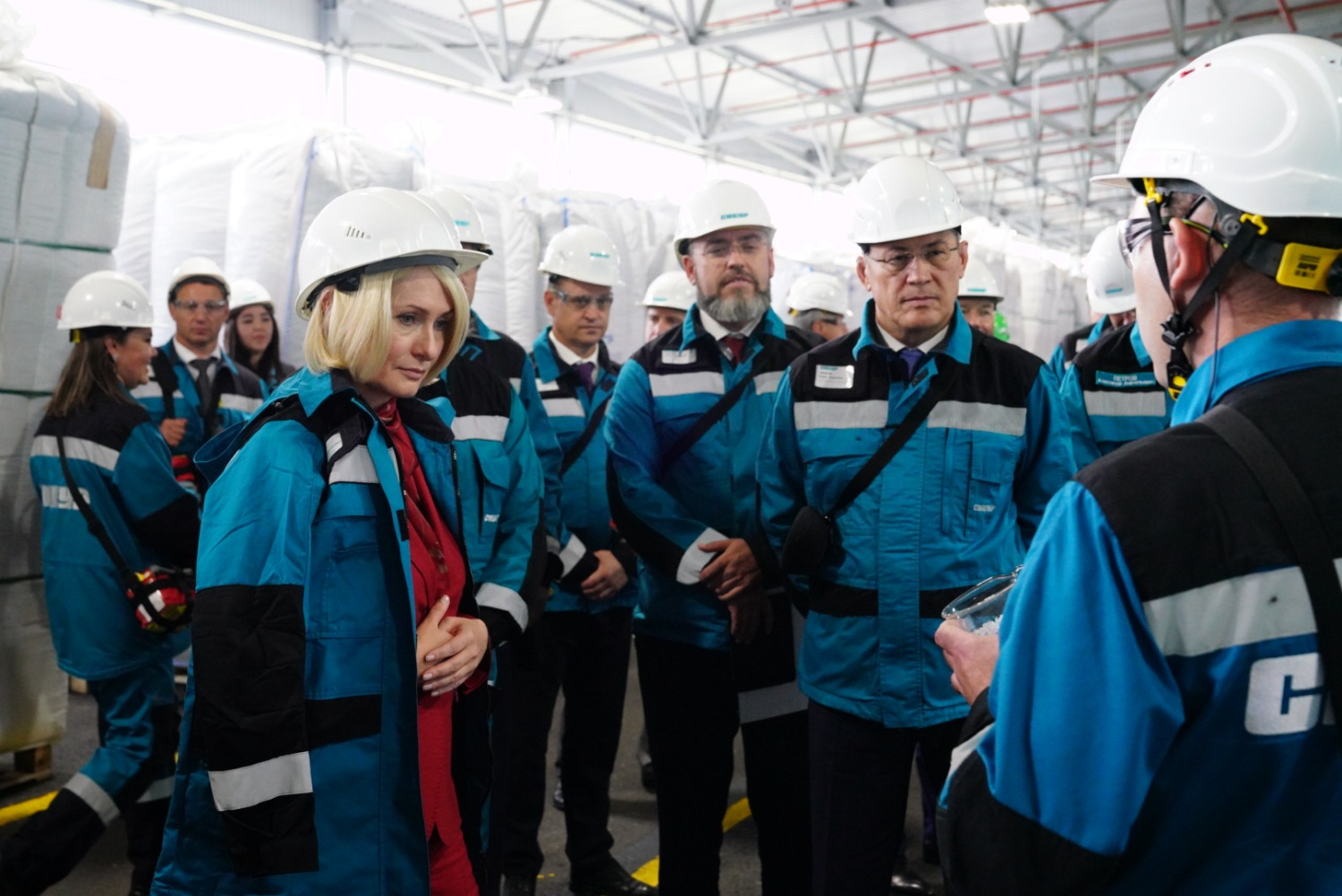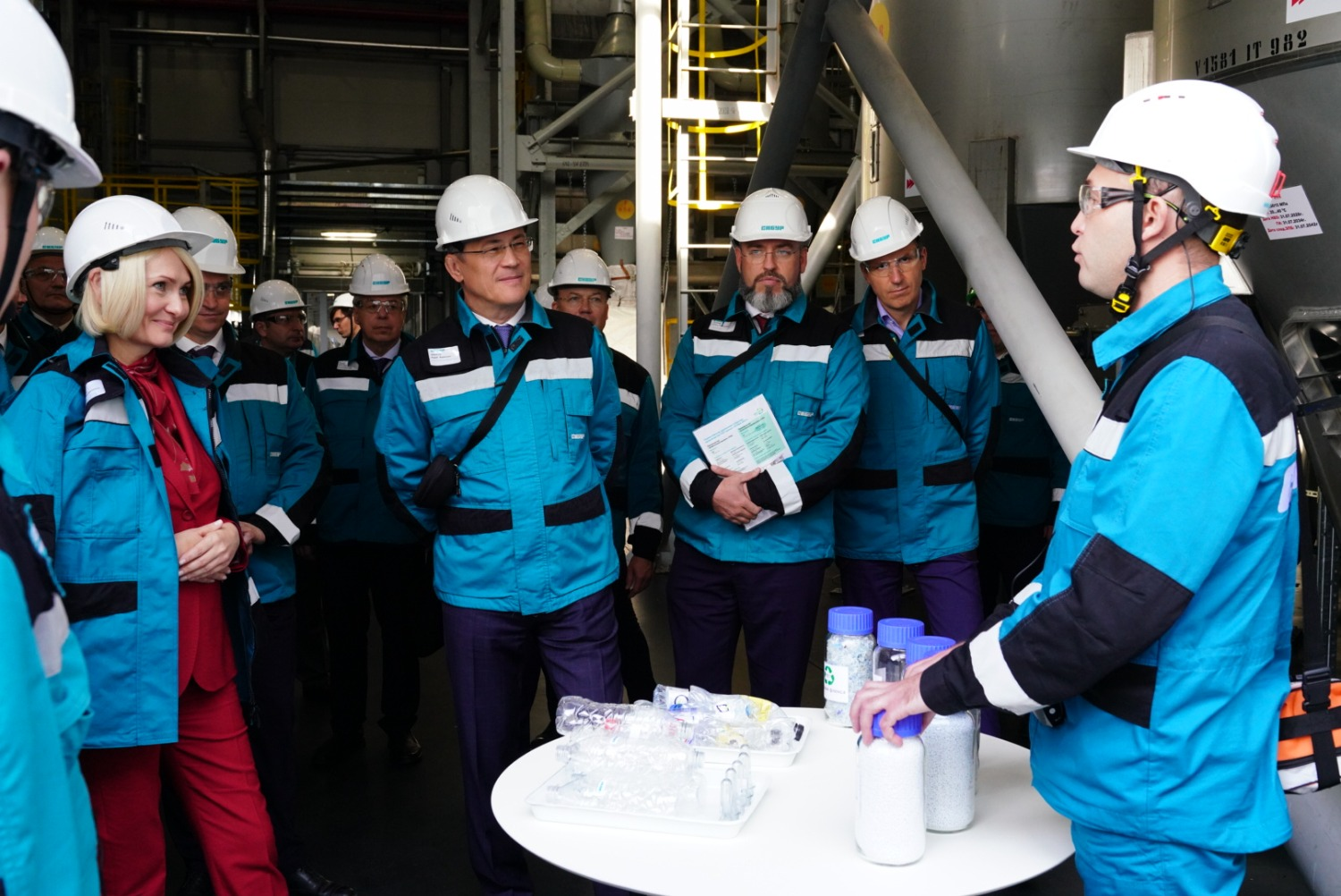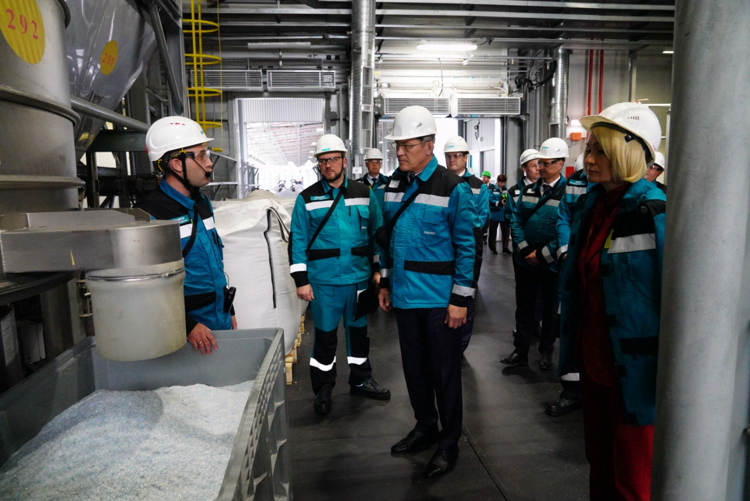 Виктория Абрамченко и Радий Хабиров также осмотрели новое производство «зеленой» ПЭТ-гранулы. Для производства гранул в качестве вторсырья предприятие использует флекс (очищенные и измельченные пластиковые бутылки), поставляемый партнерами холдинга.
