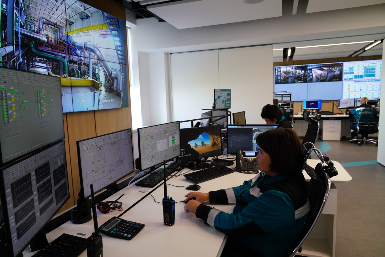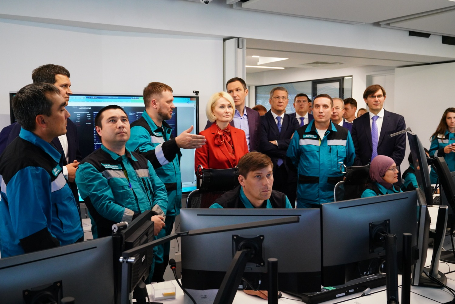 Гостям рассказали, что на базе предприятия работает единая операторная, из которой ведется централизованное управление всеми производствами, а также мобильная экологическая лаборатория для замера качества воздуха как в санитарно-защитной зоне компании, так и в городе.