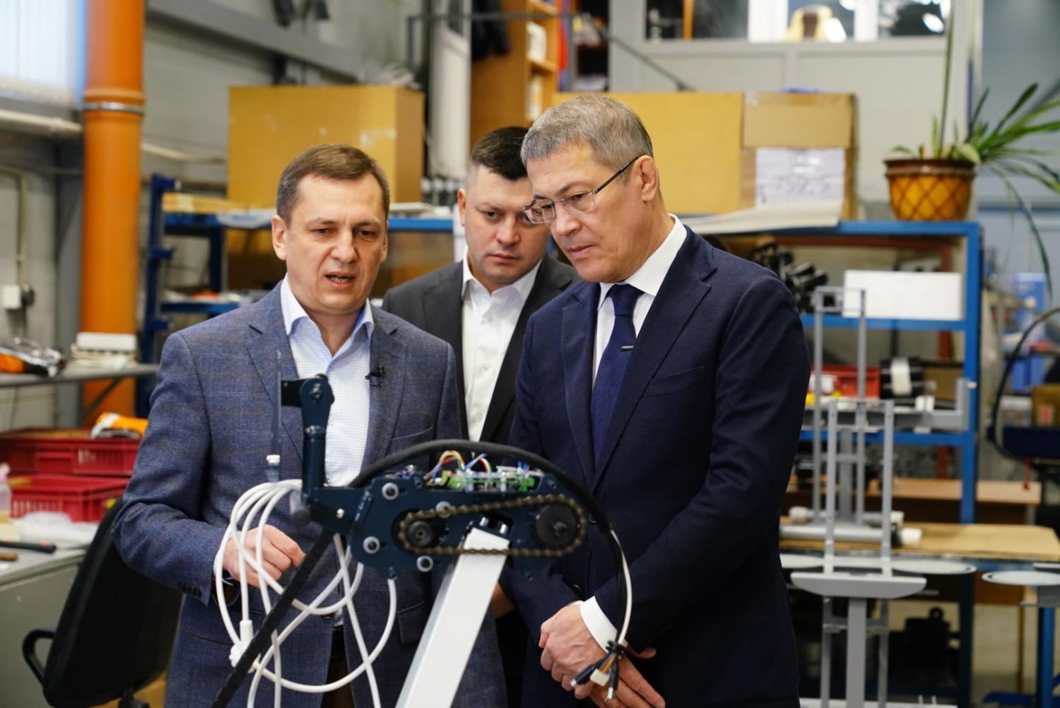 Сегодня в Демском районе Уфы на базе научно-внедренческого предприятия «Орбита» Глава Башкортостана Радий Хабиров провел выездной «Промышленный час». До его начала он ознакомился с деятельностью компании, которая занимается разработкой и производством медицинского оборудования и тренажеров для реабилитации людей с ограниченными возможностями здоровья.
