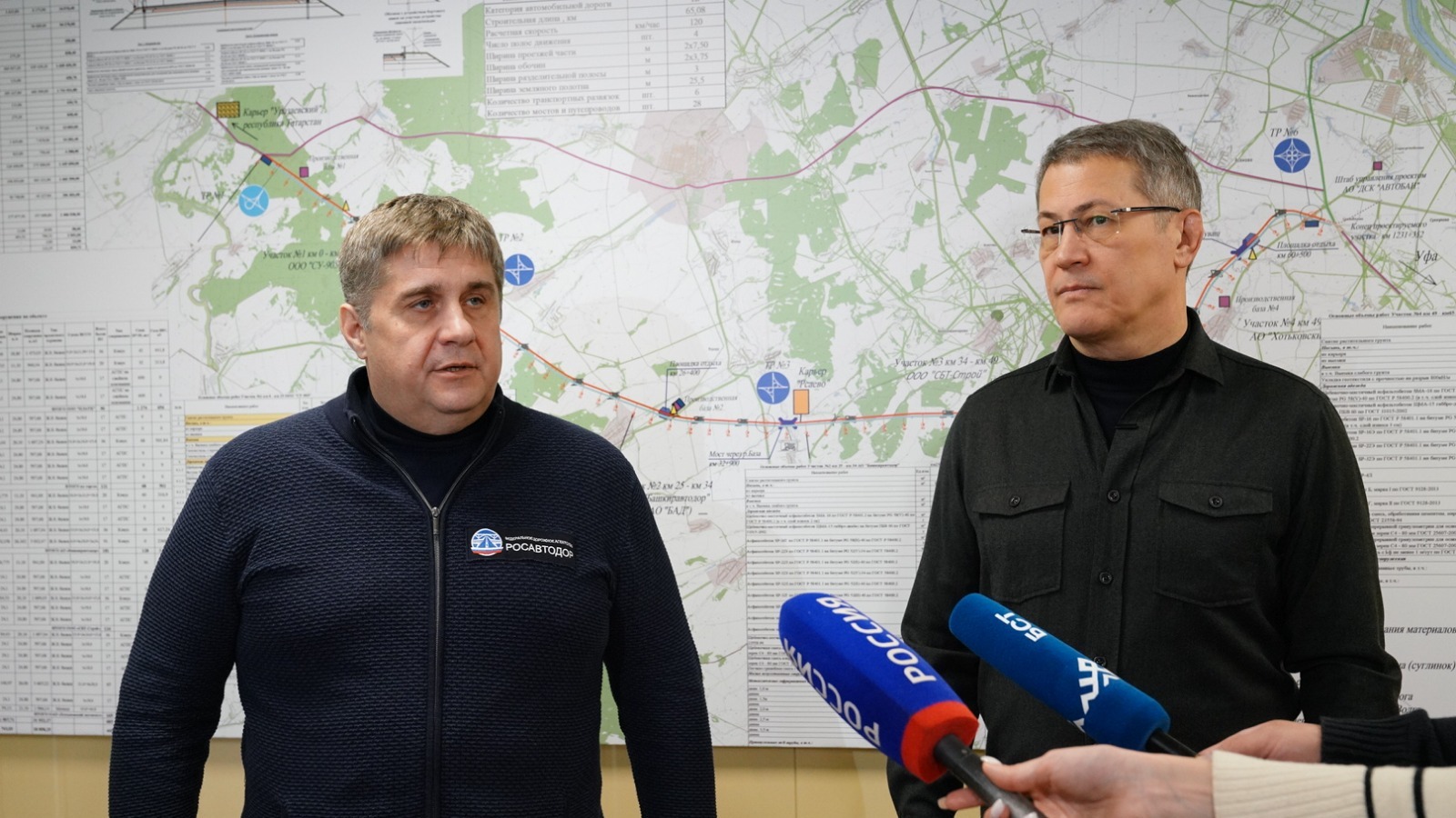 «Сегодня один из ключевых объектов – это реконструкция участка автомобильной дороги М-7 в обход пяти населённых пунктов в районе Дюртюлей. Мы сегодня с Радием Фаритовичем смогли убедиться в том, что нам удалось достигнуть тех заданных темпов, которые ставили себе достигнуть. Именно на этот период времени мы на них вышли и будем дальше реализовывать этот объект», - отметил Роман Новиков.