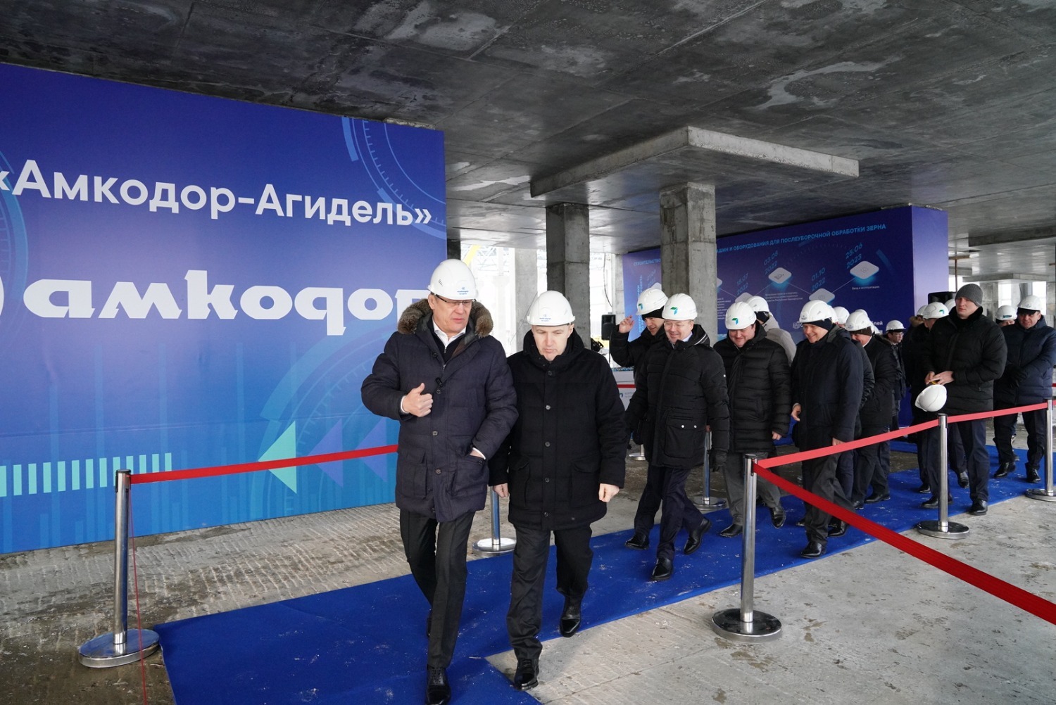 Сегодня Глава Башкортостана Радий Хабиров и Глава Адыгеи Мурат Кумпилов посетили строительную площадку предприятия по производству машин и оборудования для послеуборочной обработки зерна белорусской компании «Амкодор». Напомним, что старт строительству 21 сентября 2022 года дали премьер–министр Беларуси Роман Головченко и Глава республики Радий Хабиров.