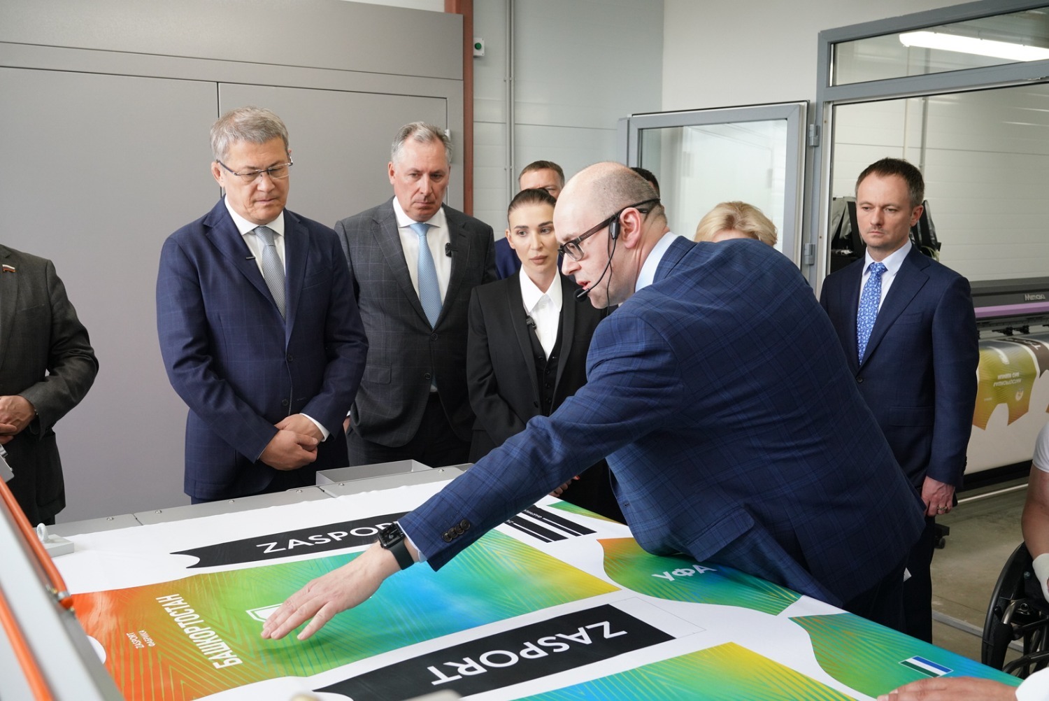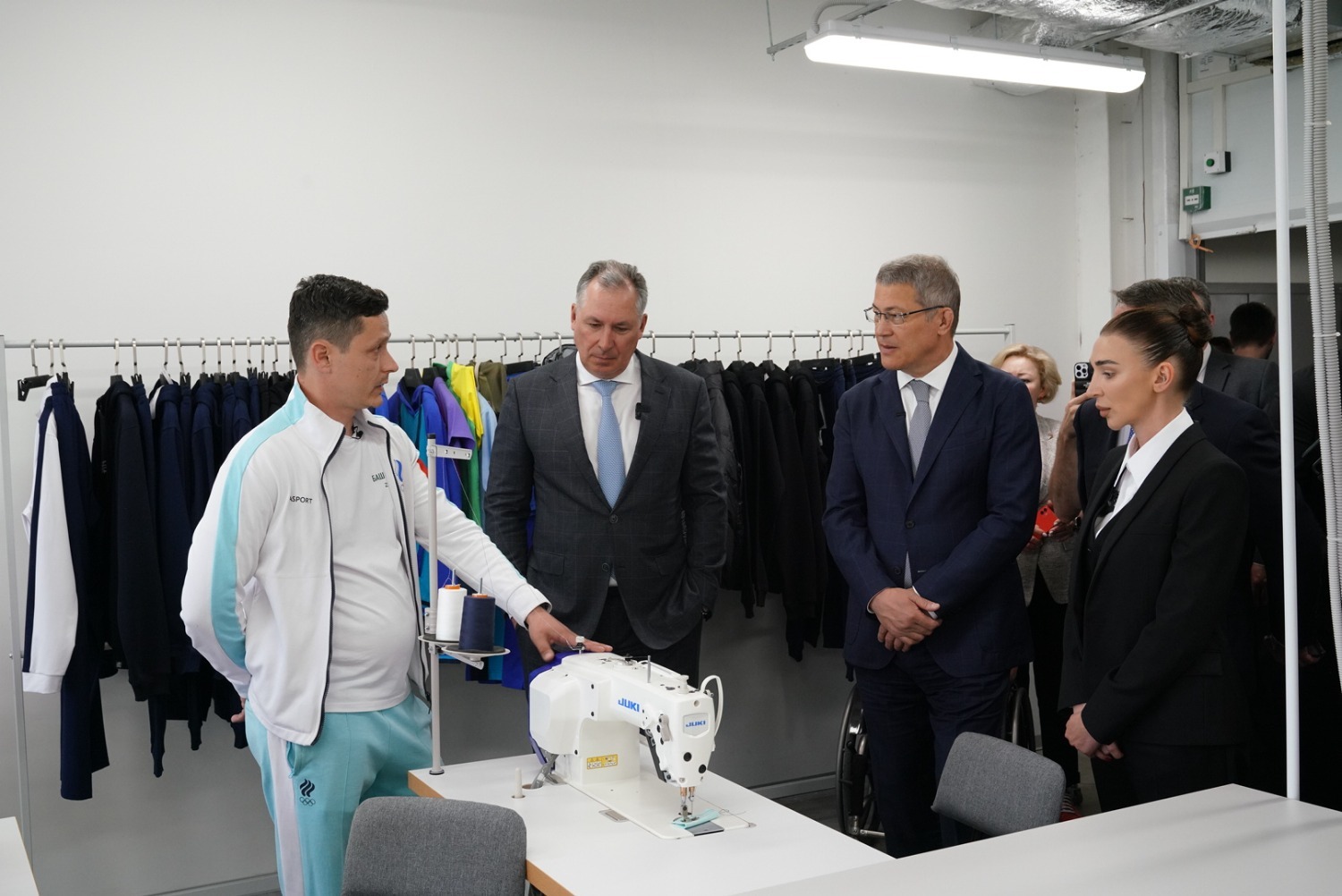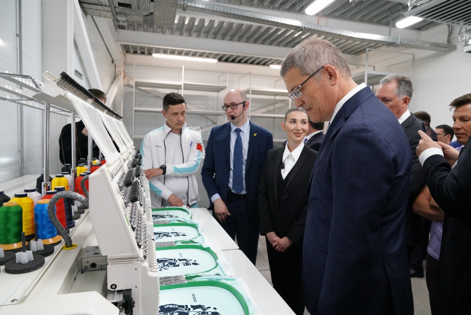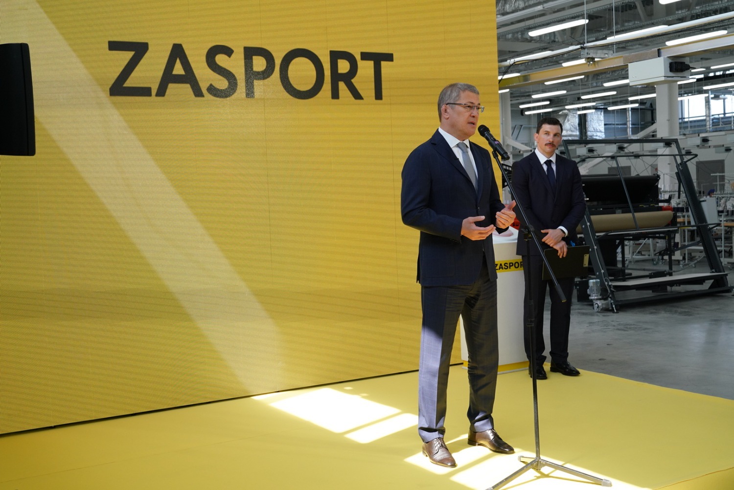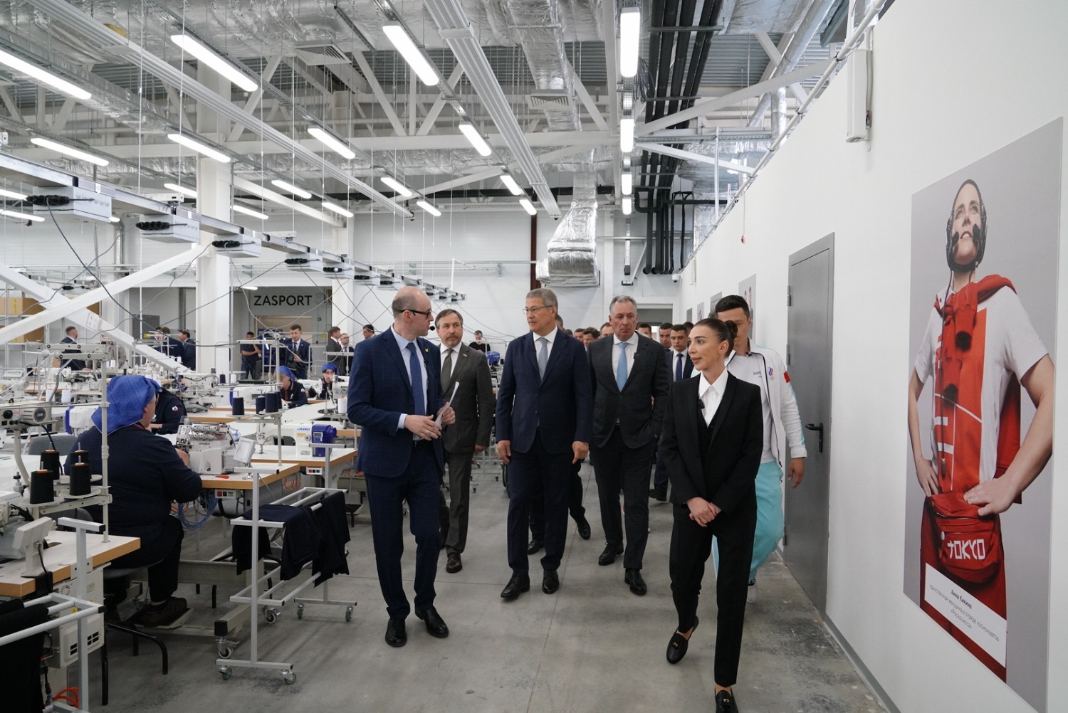 Глава Башкортостана вместе с гостями осмотрели производственные цеха. Генеральный директор ООО «Zasport» Николай Ступаков отметил, что площадь фабрики составляет более 4,5 тысячи квадратных метров. Здесь расположены раскройный, швейный подготовительный, вышивальный цеха, отделы шелкотрафаретной печати, сублимации, трансферной печати, учебный класс, склады и помещения для обеспечения работы основного производства. На втором этаже обустроено общежитие для сотрудников. Кроме того, на фабрике работает опытно-экспериментальный отдел, работники которого занимаются созданием моделей и их подготовкой к запуску в производство, а также созданием образцов продукции, лекал изделий и технической документации.
