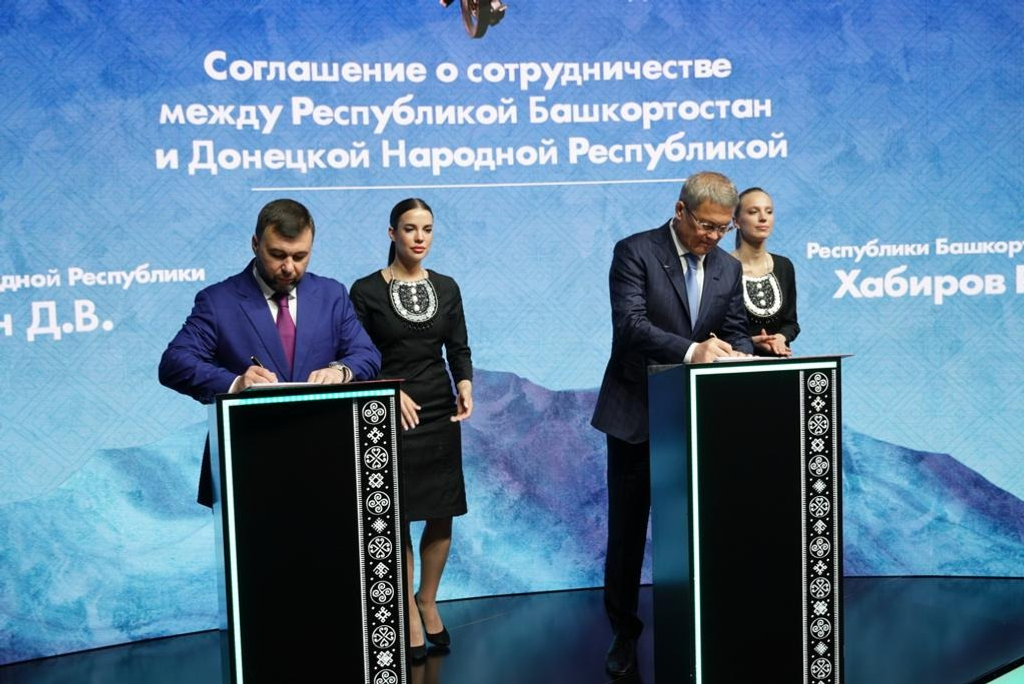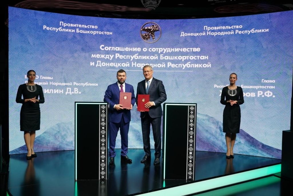15 июня на XXVI Петербургском международном экономическом форуме (ПМЭФ) Глава Башкортостана Радий Хабиров и врио Главы Донецкой Народной Республики Денис Пушилин подписали соглашение о сотрудничестве. Документ нацелен на развитие промышленного сектора, взаимодействие в сфере импортозамещения, а также создание межрегионального промышленного кластера.