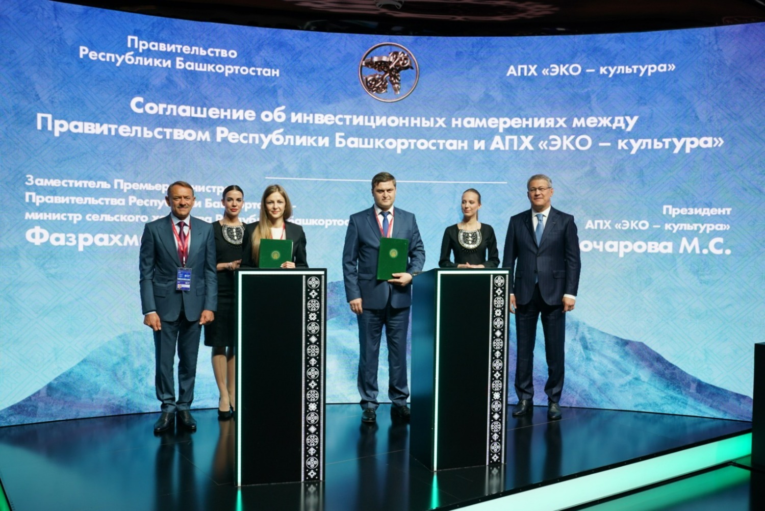 После встречи в присутствии Радия Хабирова и Александра Рудакова состоялось подписание соглашения об инвестиционных намерениях между правительством Башкортостана и АПХ «ЭКО-культура». Документ подписали заместитель премьер-министра правительства - министр сельского хозяйства республики Ильшат Фазрахманов и президент АПХ «ЭКО-культура» Мария Бочарова.