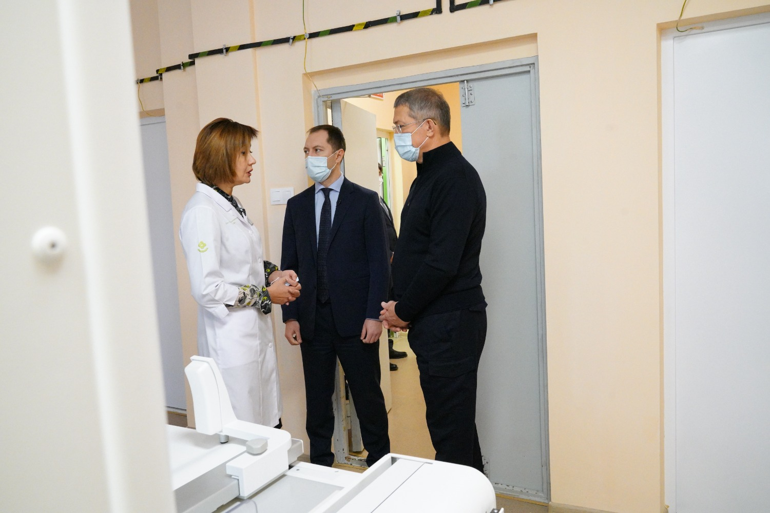 Радий Хабиров осмотрел процедурный и рентген-кабинет, кабинеты охраны зрения и врача отоларинголога и ряд других. Во время общения с врачами Глава республики поинтересовался условиями труда и оснащением кабинетов медицинским оборудованием. По словам главврача детской поликлиники №2, в 2019-2020 годах по национальным проектам в области здравоохранения получено 35 единиц оборудования, в том числе оборудование для кабинетов офтальмолога, отоларинголога, лечебной физкультуры, клинической лаборатории, аппараты УЗИ, ЭКГ и ЭЭГ с компьютерным комплексом, эндоскопические аппараты, аппараты для оказания неотложной медицинской помощи.