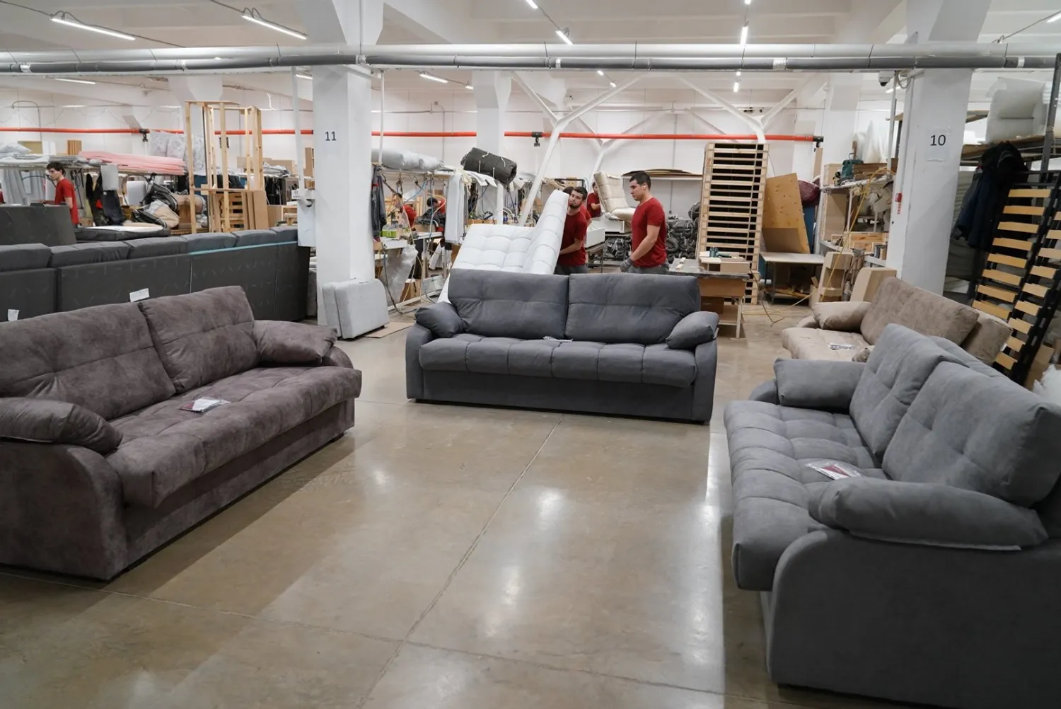 На фабрике трудится 250 профессионалов своего дела на различных участках производства. Ежемесячно здесь выпускают более 3 тыс. комплектов мягкой мебели.