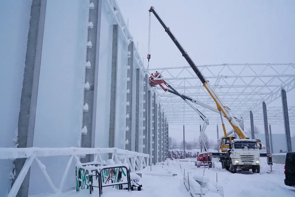 На начало 2024 года на площадке выполнили фундаментные работы и начали монтаж металлоконструкций, а также стеновых панелей здания. В ближайшее время планируют приступить к проведению инженерных сетей, систем вентиляции, дымоудаления и пожаротушения. Все работы идут в соответствии с графиком.