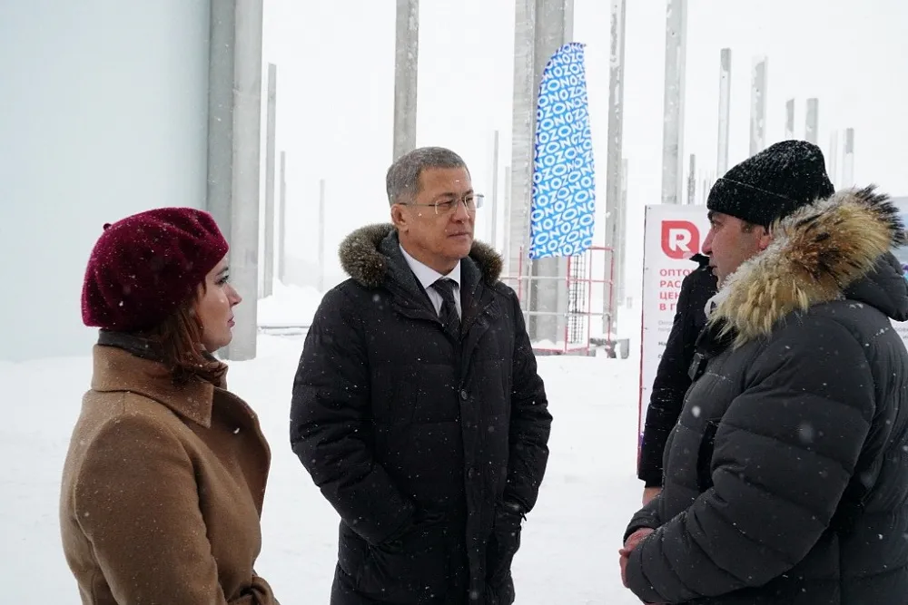 Сегодня, 12 января, в ходе рабочей поездки в Благовещенский район Глава Башкирии Радий Хабиров посетил стройплощадку логистического складского комплекса OZON площадью 93 тысячи кв. м. Его возводит компания «ОРЦ-Уфа» в рамках инвестпроекта холдинга «Ромекс Групп».