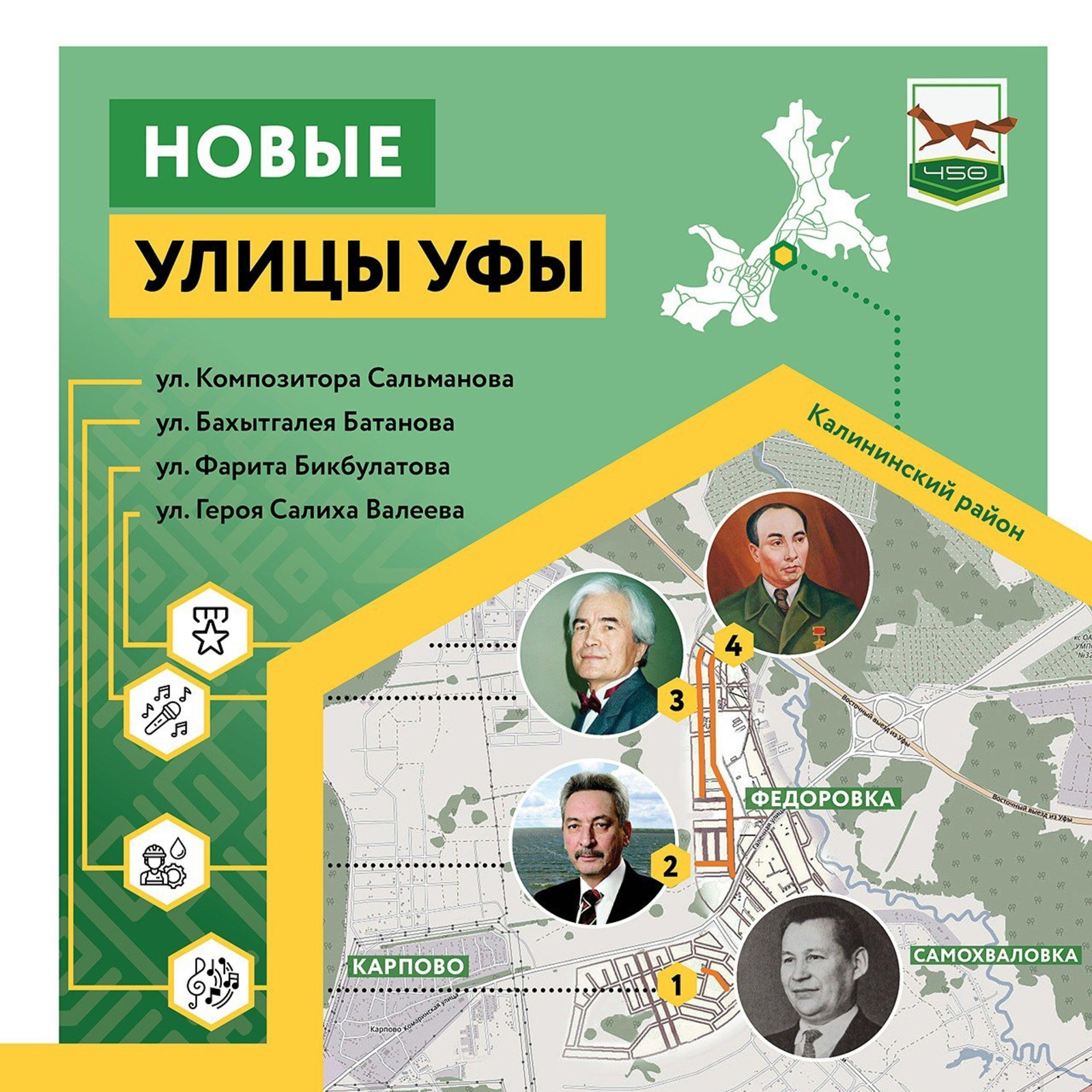 В названиях четырех новых улиц Уфы увековечены имена выдающихся жителей Башкортостана.