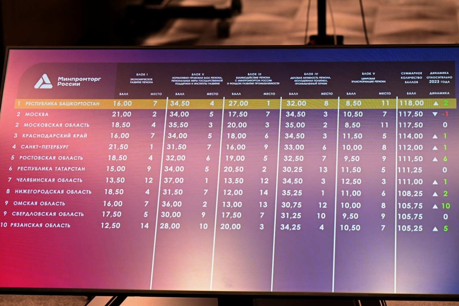 Очень здорово, что есть динамика, мы в прошлом году были третьими, в этом году мы заняли первое место в России, после нас Москва, Московская область – очень сильные промышленные регионы. Очень неплохо у нас работают все инструменты поддержки промышленности, Фонд развития промышленности, промышленный туризм, привлечение молодёжи в промышленность. Все эти показатели позволили занять первое место. И самое главное, этот показатель отталкивается от реальных показателей развития состояния экономики. По прошлому году мы почти 7 процентов ростом закончили, сейчас – семь с половиной за пять месяцев. Рост идёт, предприятия работают. Это непростая работа. Очень большая доля в республике именно обрабатывающей промышленности – то, что делают из металла, что можно потрогать руками.