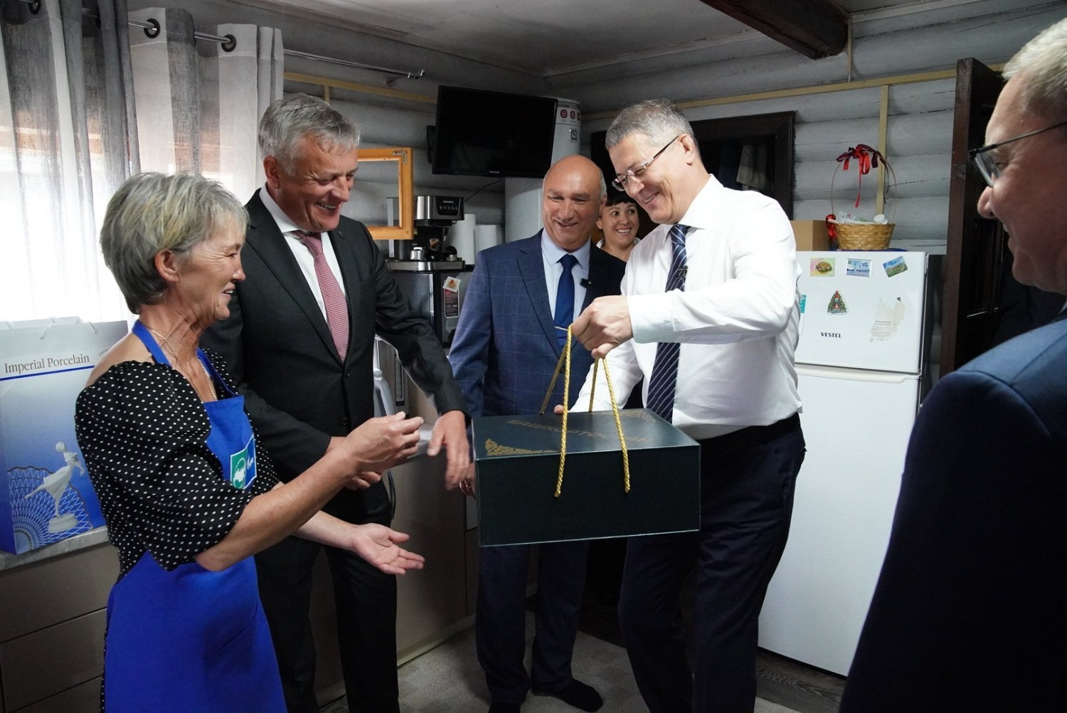 Гости посетили семью Рашидовых, в дом которых сегодня начало поступать голубое топливо, и поздравили их с этим знаменательным событием.