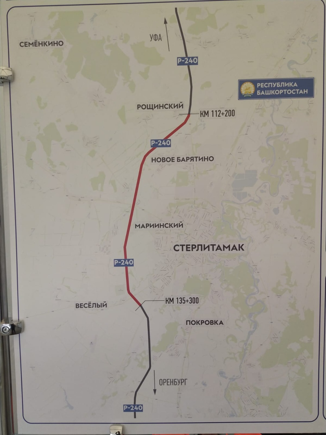 В этом году в Башкирии планируют начать капитальный ремонт 23 километров автомобильной дороги Р-240 Уфа – Оренбург на участке от 112 километра трассы в обход Стерлитамака до Стерлибашевского поворота. Речь идет о расширении действующей дороги с двух до четырёх полос для увеличения её пропускной способности и повышения безопасности движения. График ремонта предусматривает проведение работ в 2024–2026 годах.