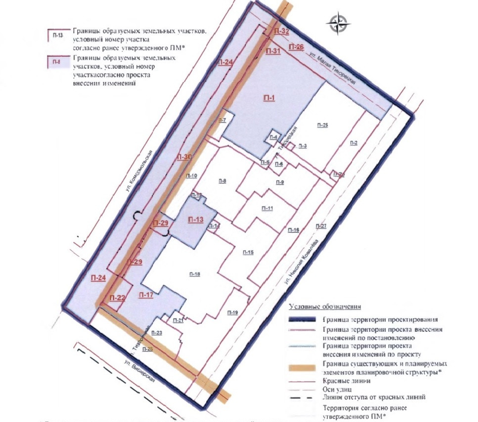 В новый вариант проекта межевания включен участок площадью 5,8 тыс. квадратных метров для благоустройства и озеленения. В прежней версии документа данный участок предназначался для расширения проезжей части Комсомольской улицы, размещения инженерных сетей и элементов благоустройства.