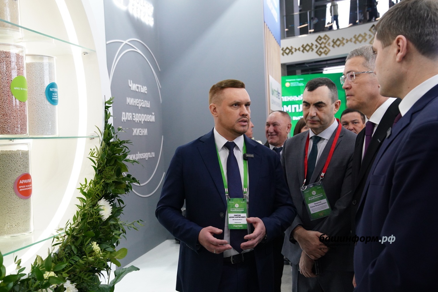 Глава Башкортостана также посетил стенды компаний, которые работают на рынке минеральных удобрений, где обсудил с поставщиками вопросы ценовой политики.