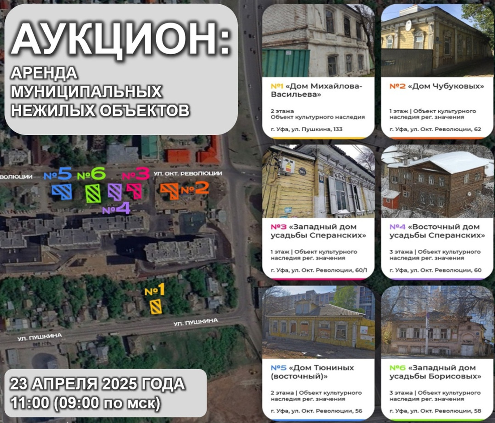 Управление земельных и имущественных отношений Уфы на электронной площадке utp.sberbank-ast.ru проведет электронный аукцион на право заключения договоров аренды объектов культурного наследия с последующим преимущественным правом выкупа.