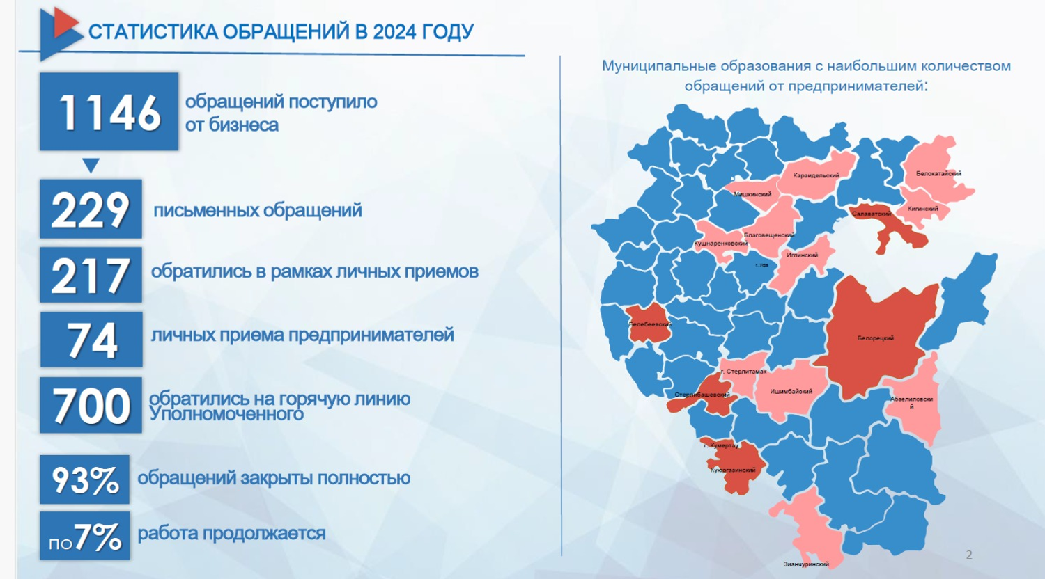 В прошлом году уполномоченному по защите прав предпринимателей Башкирии поступило 1146 обращений. Максимальное количество жалоб поступало из Белорецкого, Салаватского, Белебеевского, Стерлибашевского, Куюргазинского районов. Основное количество обращений – 700, пришлось на горячую линию. Об этом на заседании комитета Госсобрания РБ по промышленности, инновационному развитию, торговле, предпринимательству и туризму сообщила региональный бизнес-омбудсмен Ирина Абрамова.