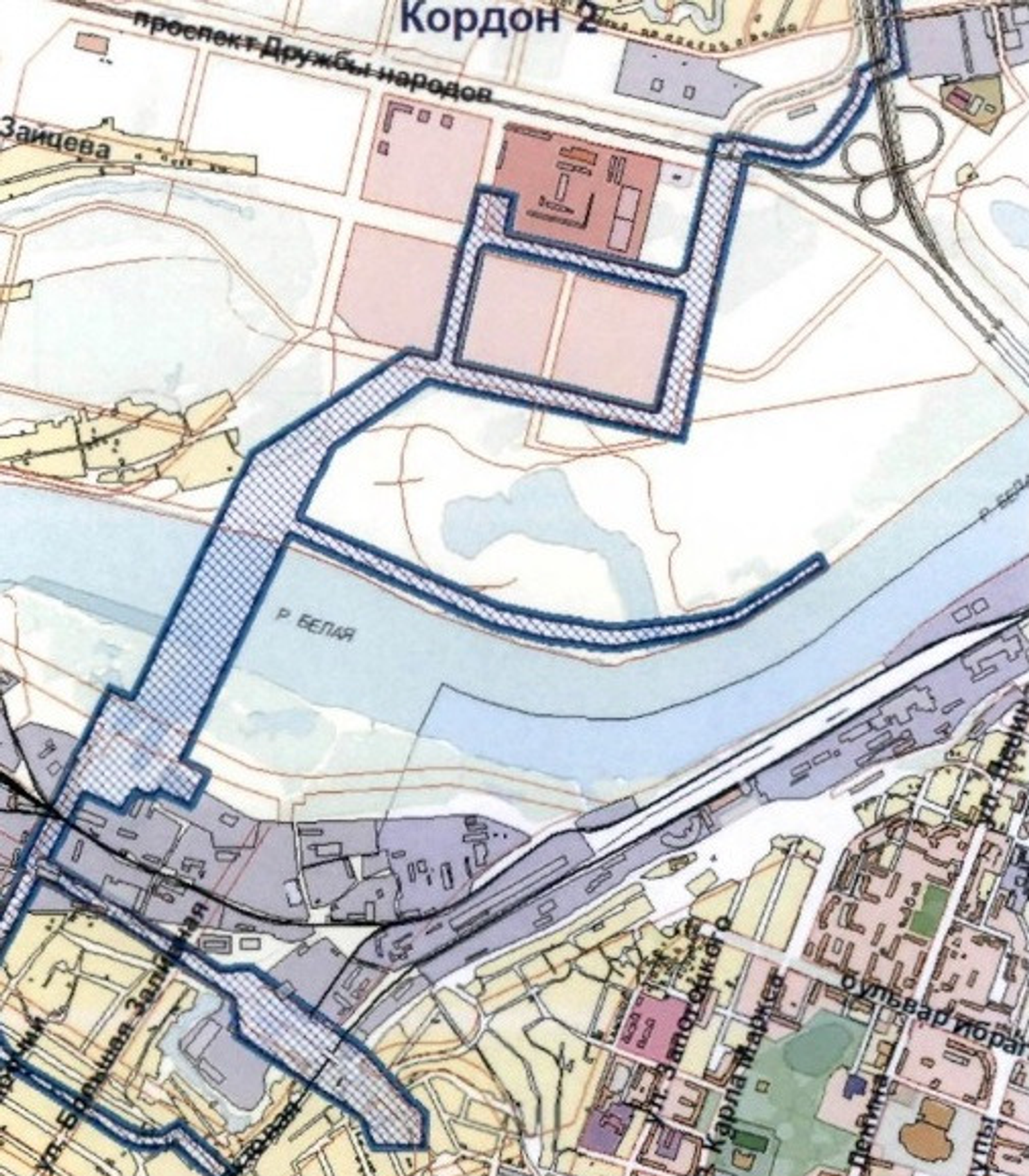 Согласно техзаданию, при разработке проекта нужно учесть проект планировки территории юго-западного склона, ограниченного железной дорогой, урезом реки Белая, Затонским мостом и городскими улицами. План организации рельефа нужно разработать с учетом вертикальной планировки окружающих улиц.