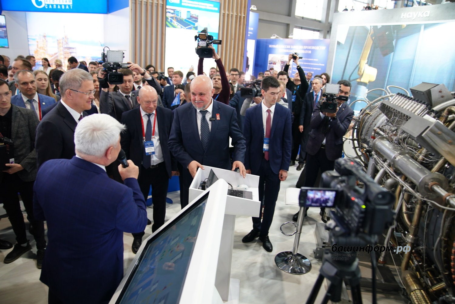 Сегодня в уфимском выставочном комплексе «Экспо» после церемонии открытия Российского нефтегазохимического форума и запуска новых производств Глава Башкортостана Радий Хабиров и министр энергетики России Сергей Цивилев осмотрели ряд экспозиций на выставке «Газ. Нефть. Технологии».