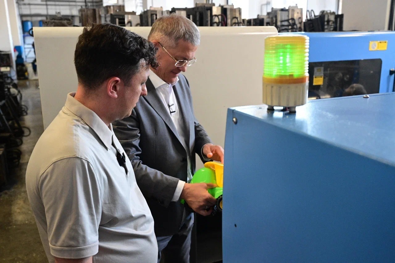 Сегодня рабочая поездка Главы Башкортостана Радия Хабирова в Бирск началась с посещения производственной площадки предприятия «Спектр». Это один из опытных республиканских производителей, который занимается изготовлением игрушек на протяжении 35 лет. Предприятие осуществляет полный цикл производства продукции: проектирование конструкции, разработка дизайна, изготовление пресс-форм, литье, сборка и упаковка готового изделия. Директор предприятия Владимир Ярмоленко рассказал, что в ассортименте завода детские игрушки, товары для активного отдыха и спорта, детского творчества. Их отличает высокое качество, безопасность, прочность, яркая цветовая гамма, невысокая цена.