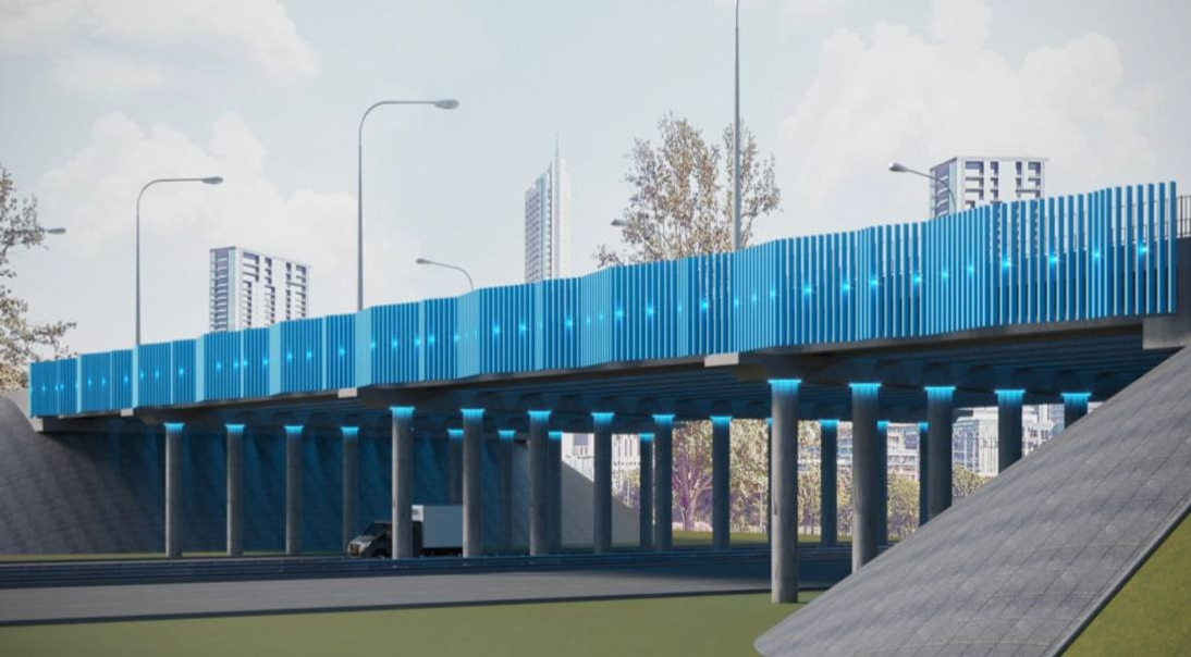 Путепровод, соединяющий улицы Айскую и Бакалинскую, планировалось осветить фиолетовым. Это последний объект, пока остающийся без ночного цветового оформления на главной городской скоростной магистрали.