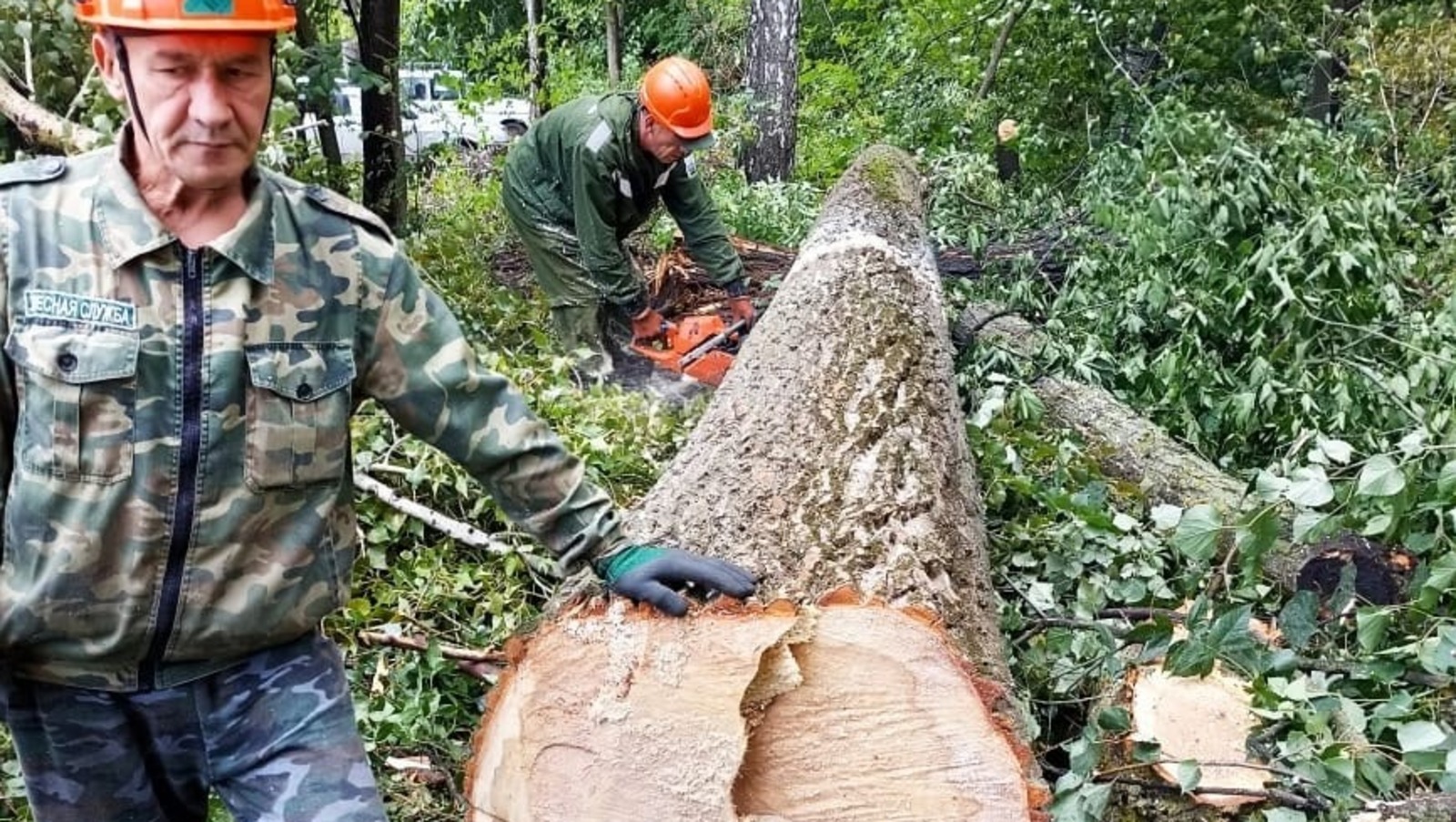 «Лесники Горзеленхоза проделали опасную, тяжёлую и вместе с тем ювелирную работу, — рассказал Арсен Латыпов. — Стесненные условия требовали большой точности при работе с автогидроподъёмником. Стволы предварительно очищались от ветвей, после чего оставшуюся „свечку“ последовательно раскряжёвывали на части».