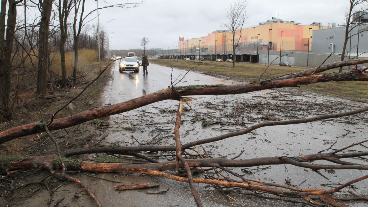 Упавшее у загородного мегамаркета дерево срезало госномер у проезжавшей «Шкоды Октавии»