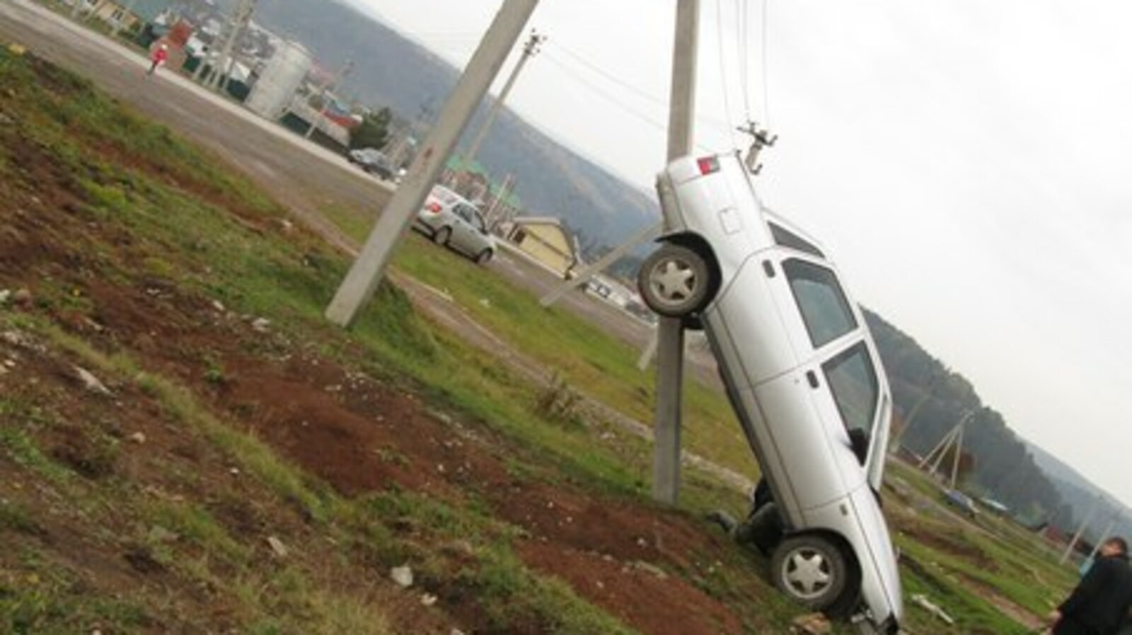 УФА, 20 сен 2015. /ИА «Башинформ», Ольга Муртазина/. В Башкирии водитель вазовской «десятки» забрался на электроопору. Он двигался задним ходом до тех пор, пока нос автомобиля не уперся в землю.