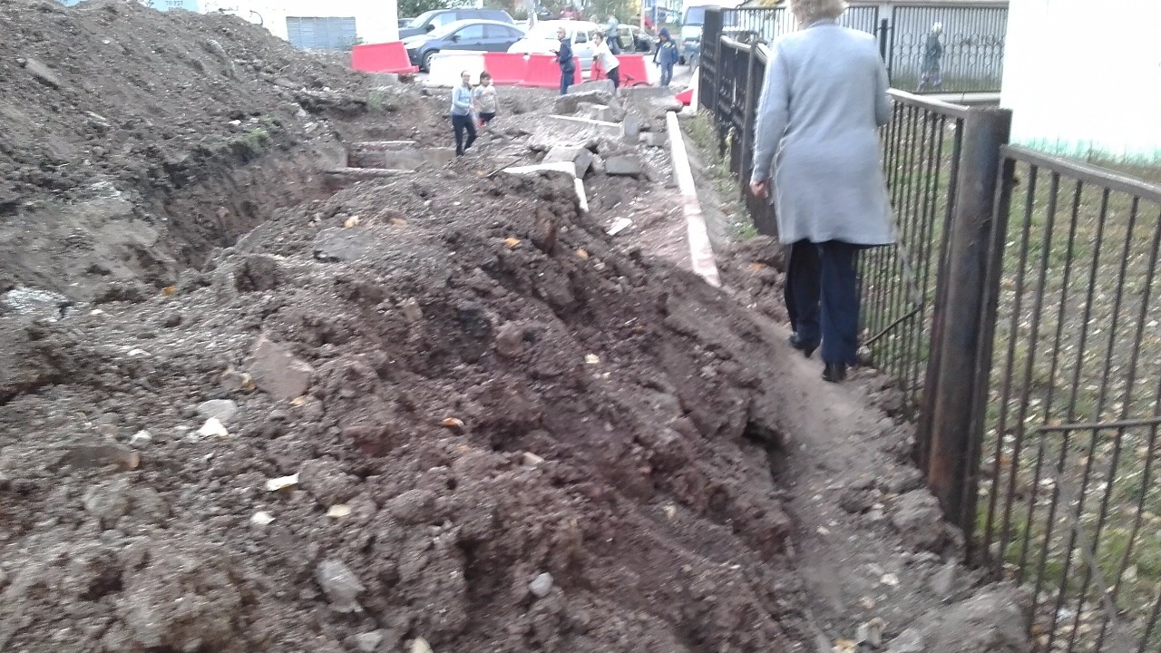 Уфимцы ходят рядом с опасным местом, игнорируя заградительные приспособления. По словам местных жителей, ремонт начался на прошлой неделе и продвигается очень медленно.