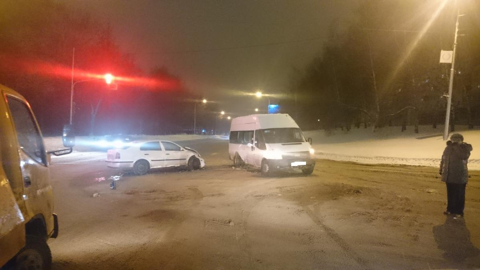 В результате аварии пострадали пассажиры микроавтобуса. Женщина с травмами головы госпитализирована. Еще две пассажирки получили различные травмы, им оказана медицинская помощь.
