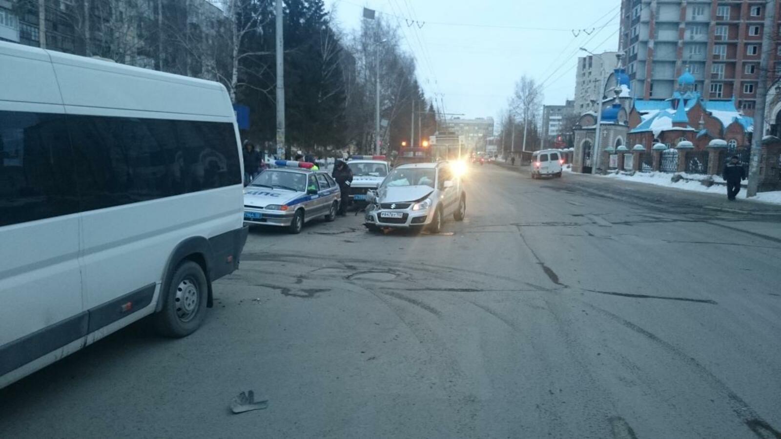 В Уфе автомобиль врезался в маршрутку, есть пострадавшие