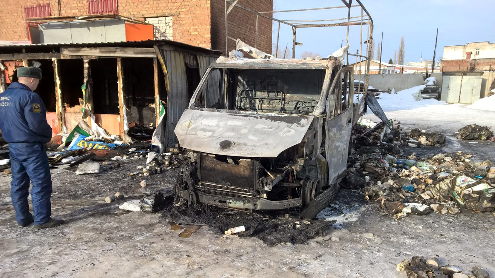 Специалисты испытательной пожарной лаборатории устанавливают причину произошедшего.