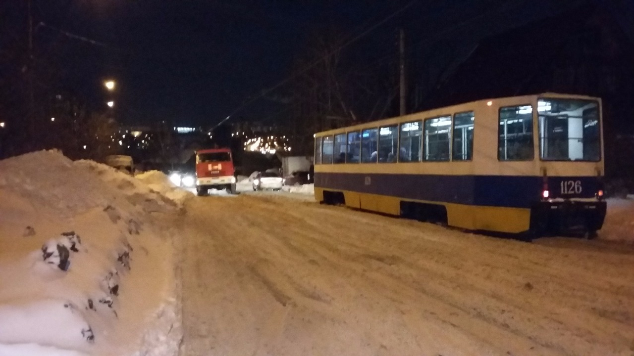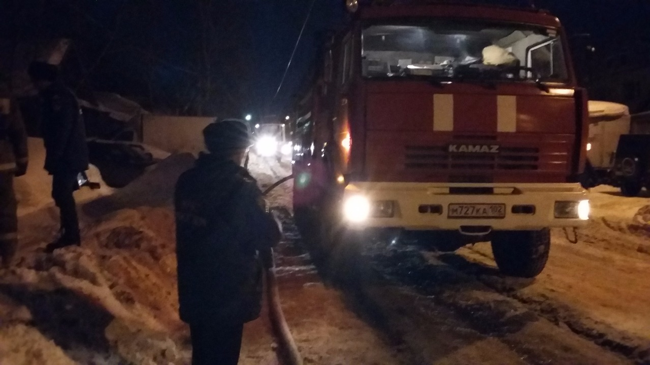 УФА, 18 фев 2016. /ИА «Башинформ», Ксения Калинина, Арина Рахимкулова/. В Уфе сегодня, 18 февраля, произошел пожар в частном секторе. Дом на улице Сун-Ят-Сена поджег бомж. Приехавшие на место автомобили пожарных и полицейских парализовали движение трамвайных путей.