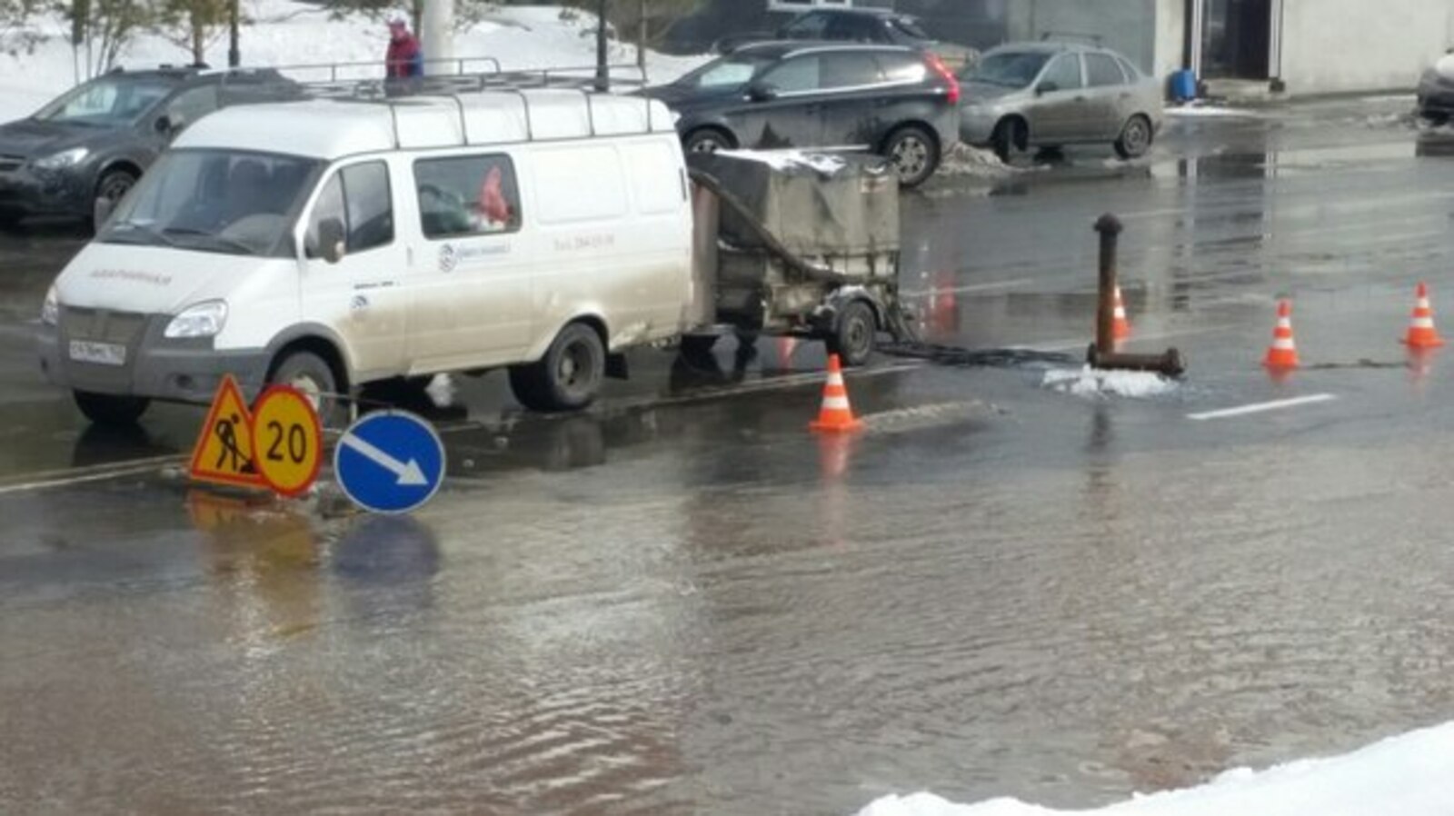 Работники «Уфаводоканала» устраняют «потоп» на улице Заки Валиди