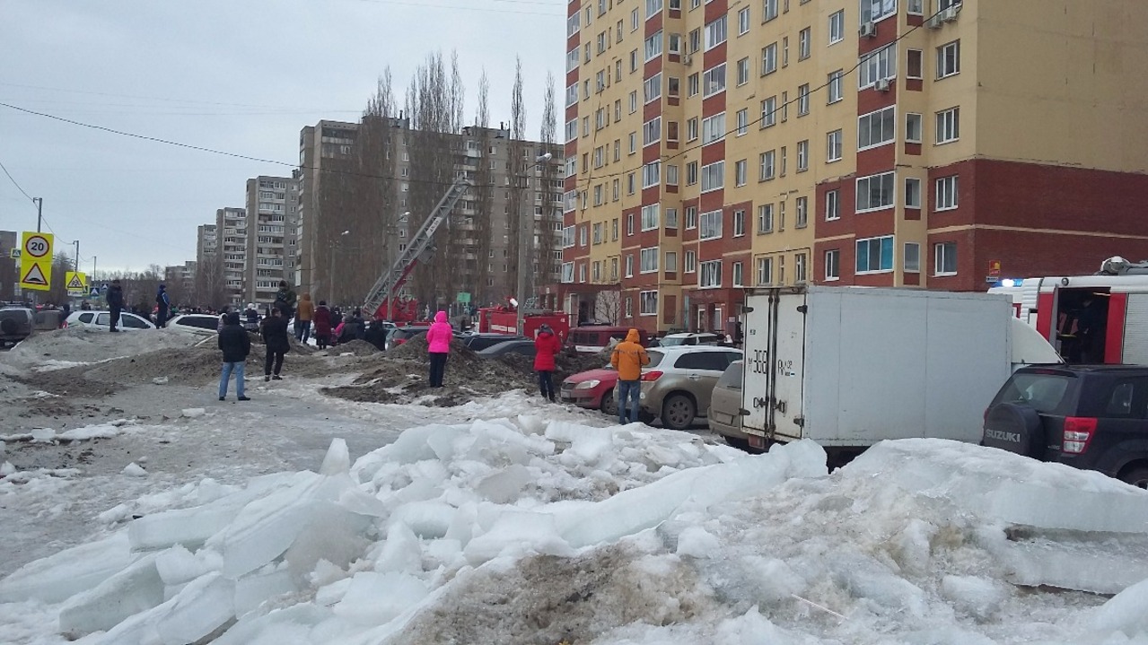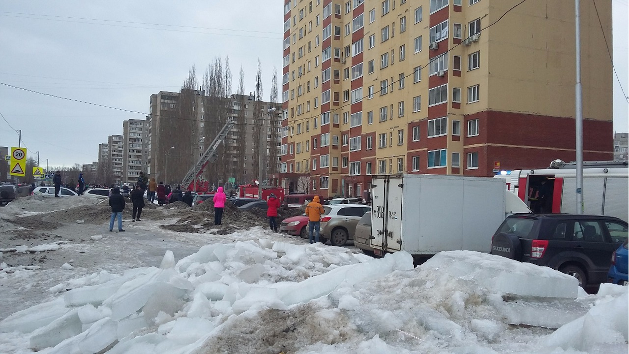 По словам очевидцев, с крыши дома на землю падают балки. Местные жители в панике переставляют автомобили подальше от горящего дома.