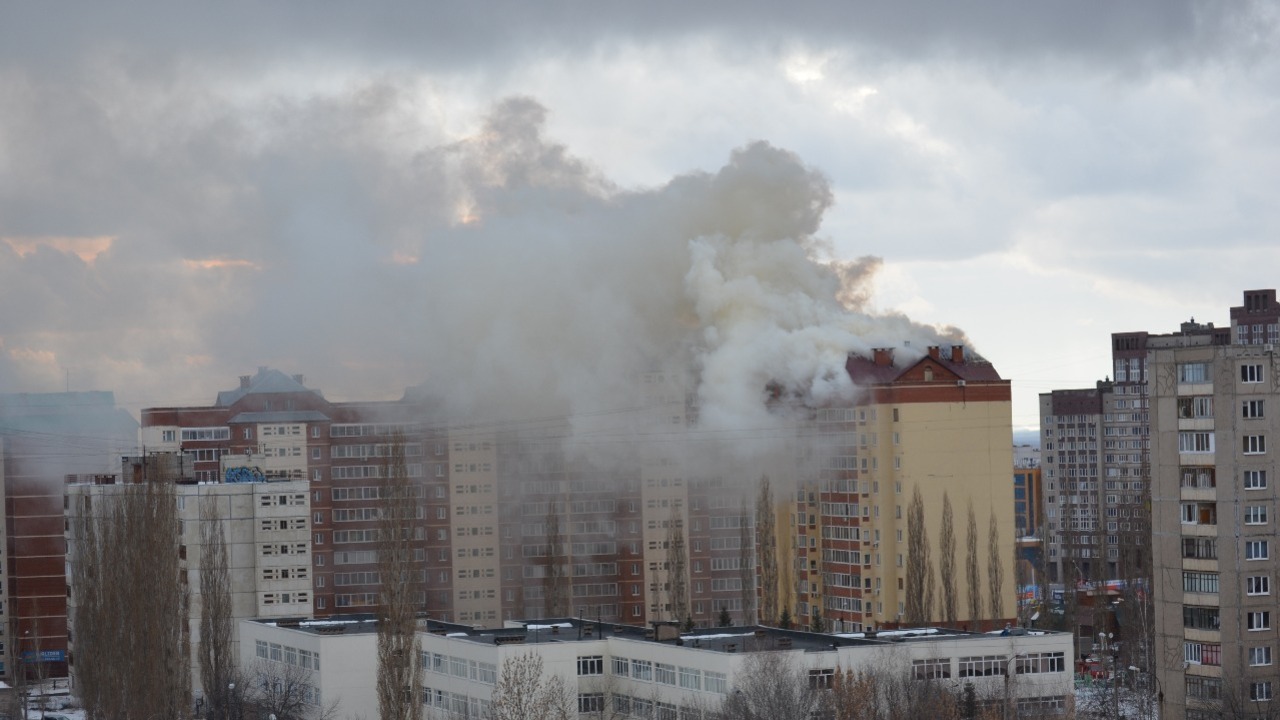 В Уфе на улице Мубарякова горит многоэтажный жилой дом – видео