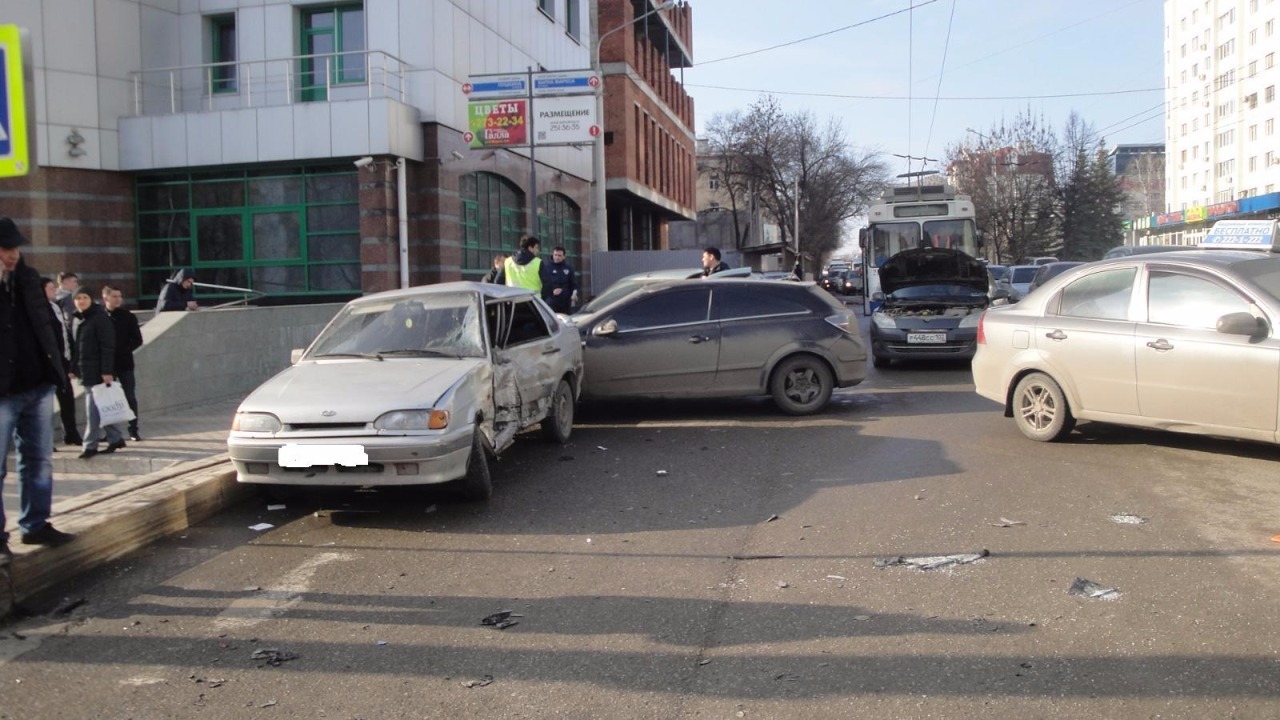 столкнулись «Тойота Камри» и «Инфинити М37». От удара последний автомобиль занесло на крыльцо суда. В обеих иномарках пострадали малолетние пассажиры — мальчики трех и девяти лет. 6 ноября 2014 года там же автобус «НефАЗ»