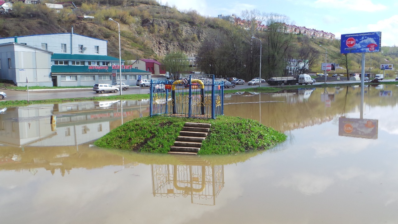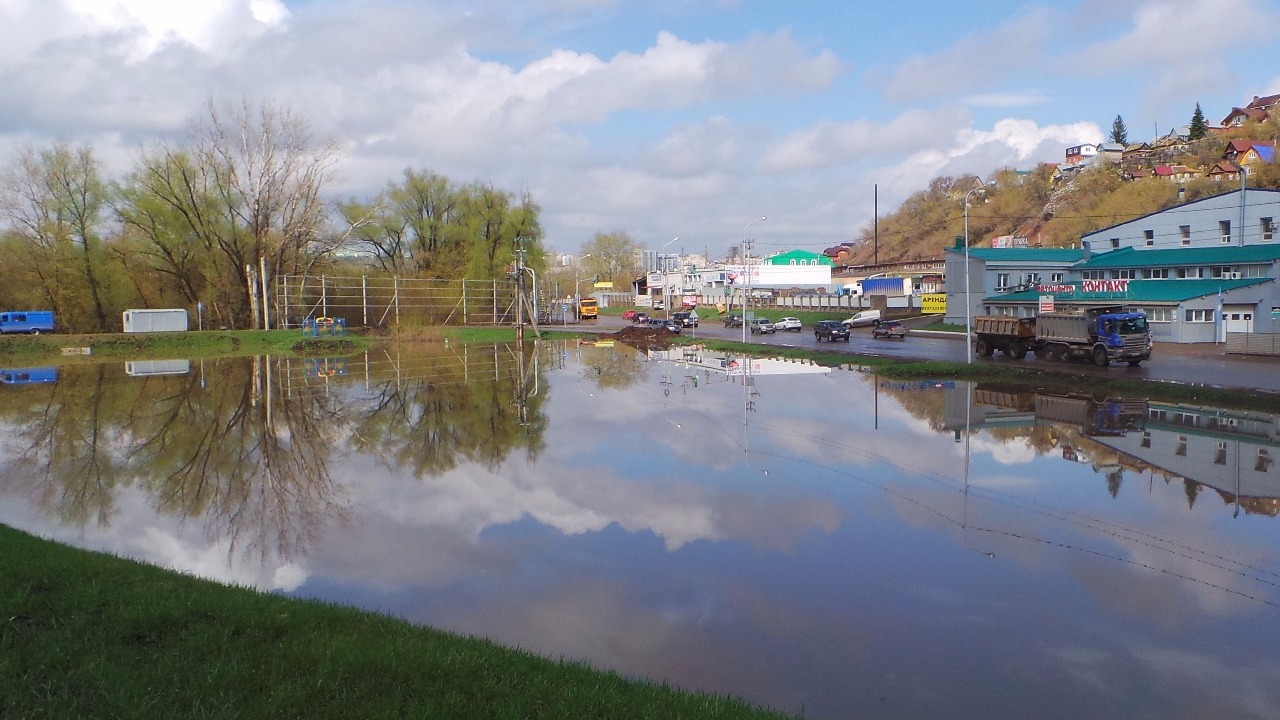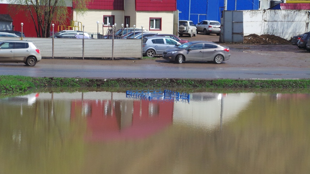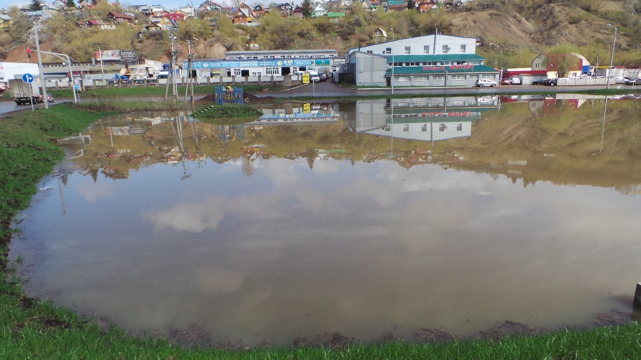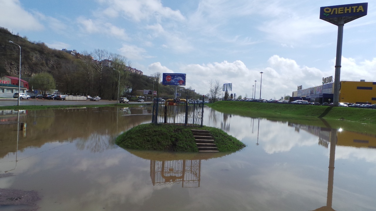 В Уфе из-за подъема воды на реке Белой рядом с гипермаркетом «Лента» образовалось озеро